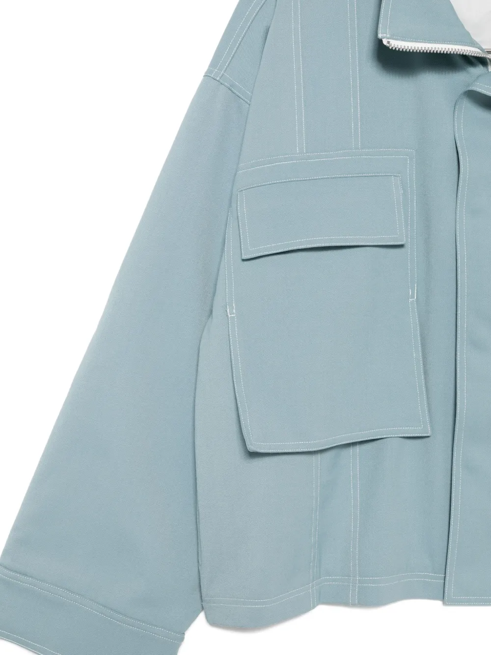 Светло-голубой застежка-молния спереди два накладных кармана белая отделочная строчка длинные рукава