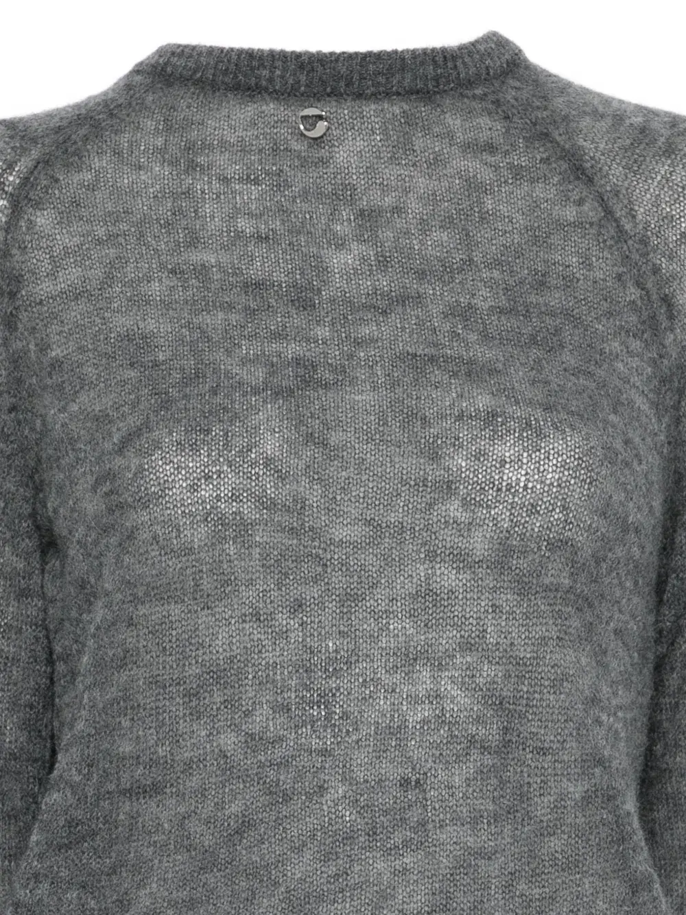 Серый вырез на спине рукава-реглан приталенная талия полупрозрачная вязаная ткань