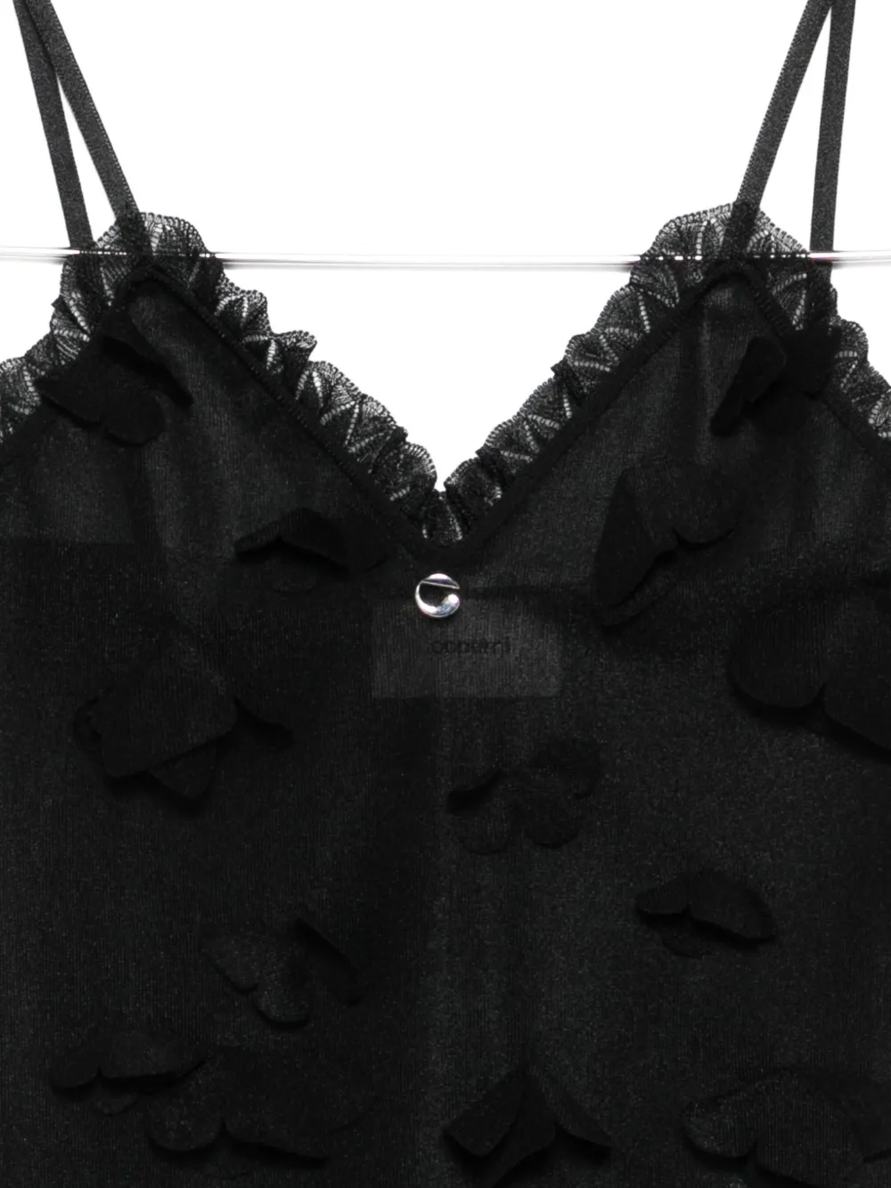 Черный украшение в виде бабочки оборчатая отделка тонкие бретели V-образный вырез