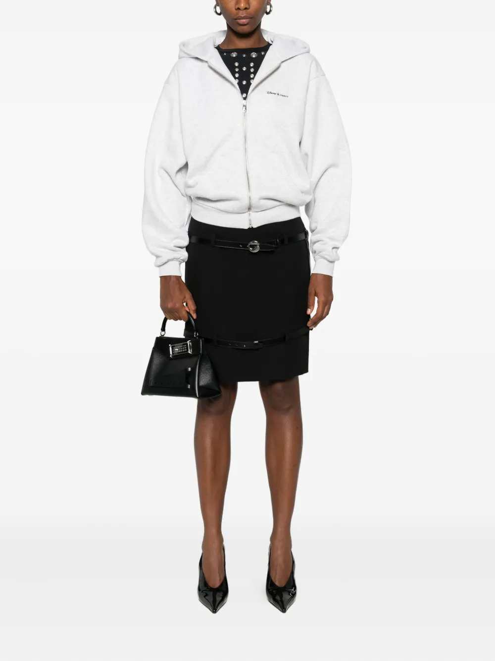 Серый застежка-молния капюшон на кулиске вышитая деталь карманы-кенгуру длинные рукава