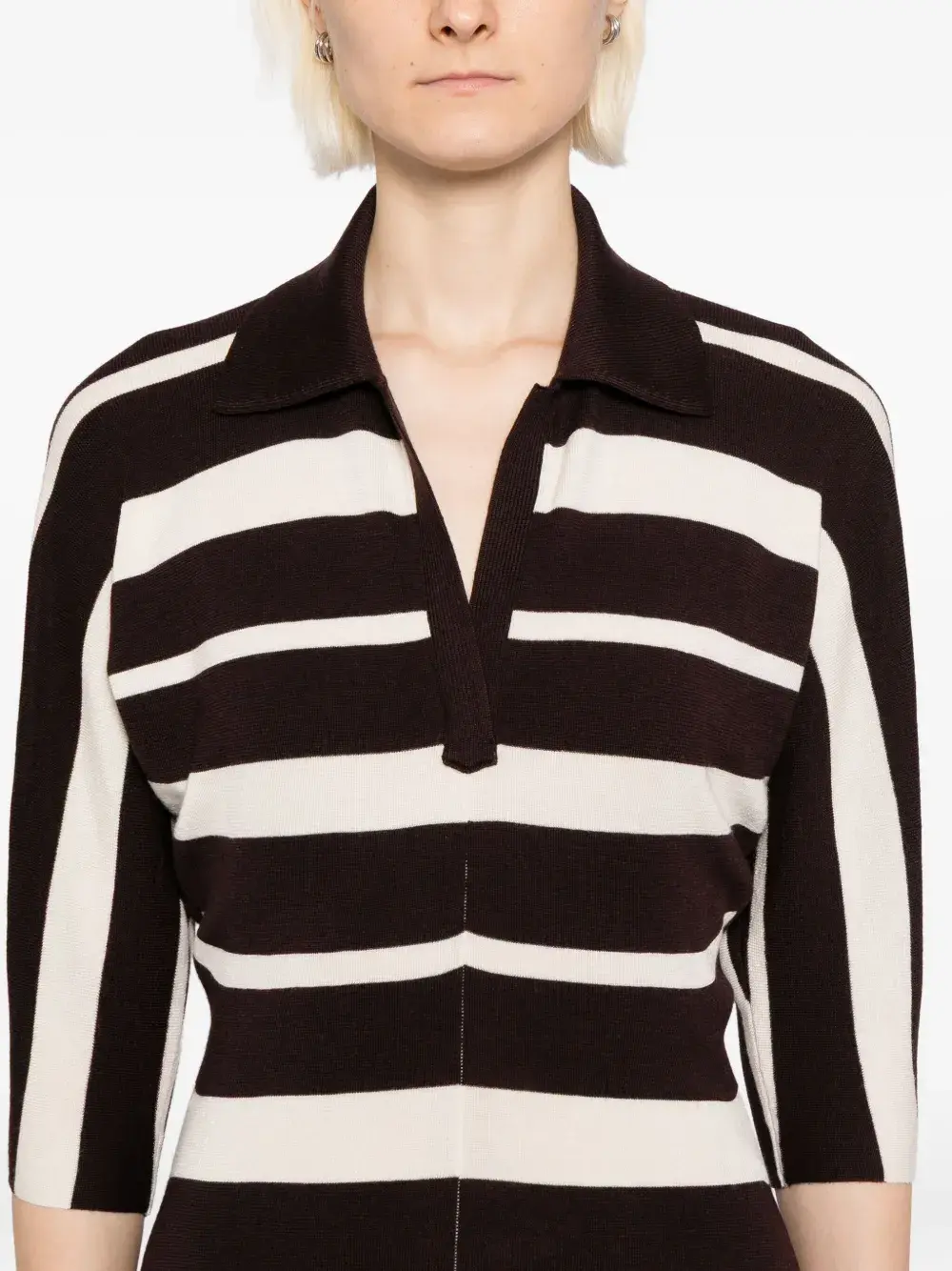 Кофейно-коричневый/кремовый воротник поло разрез сзади короткие рукава