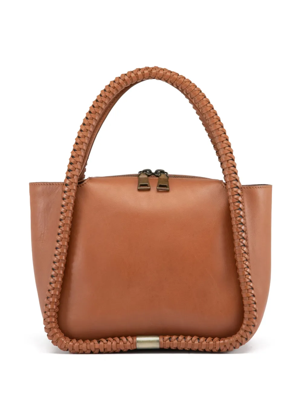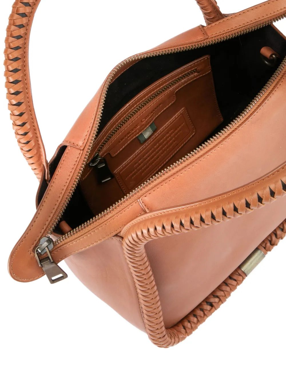 Коричневый плетеная кожаная верхняя ручка отделка из плетеной кожи верхняя застежка-молния регулируемый съемный плечевой ремень