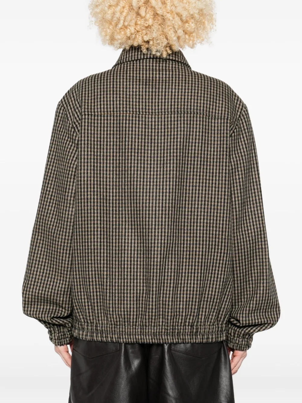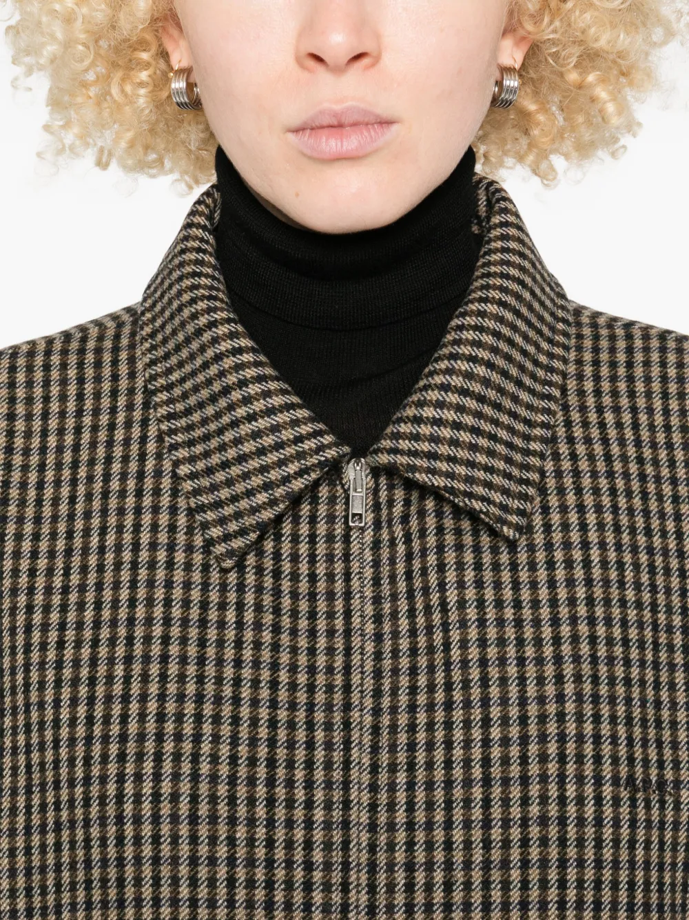 Черный узор в гингемную клетку застежка-молния спереди классический воротник эластичные манжеты боковые прорезные карманы