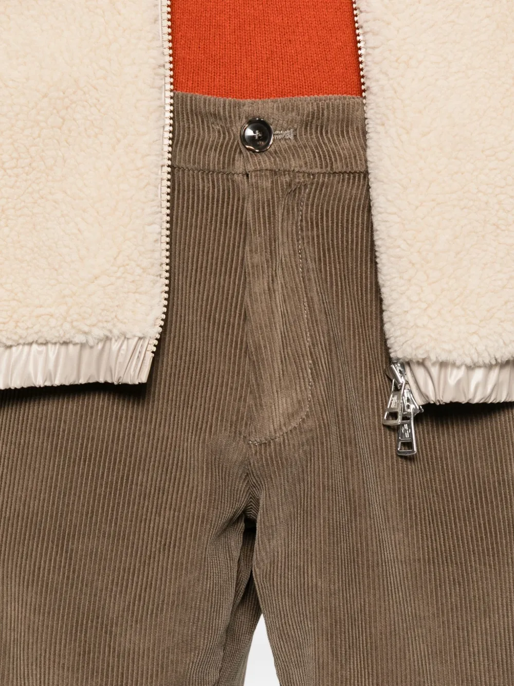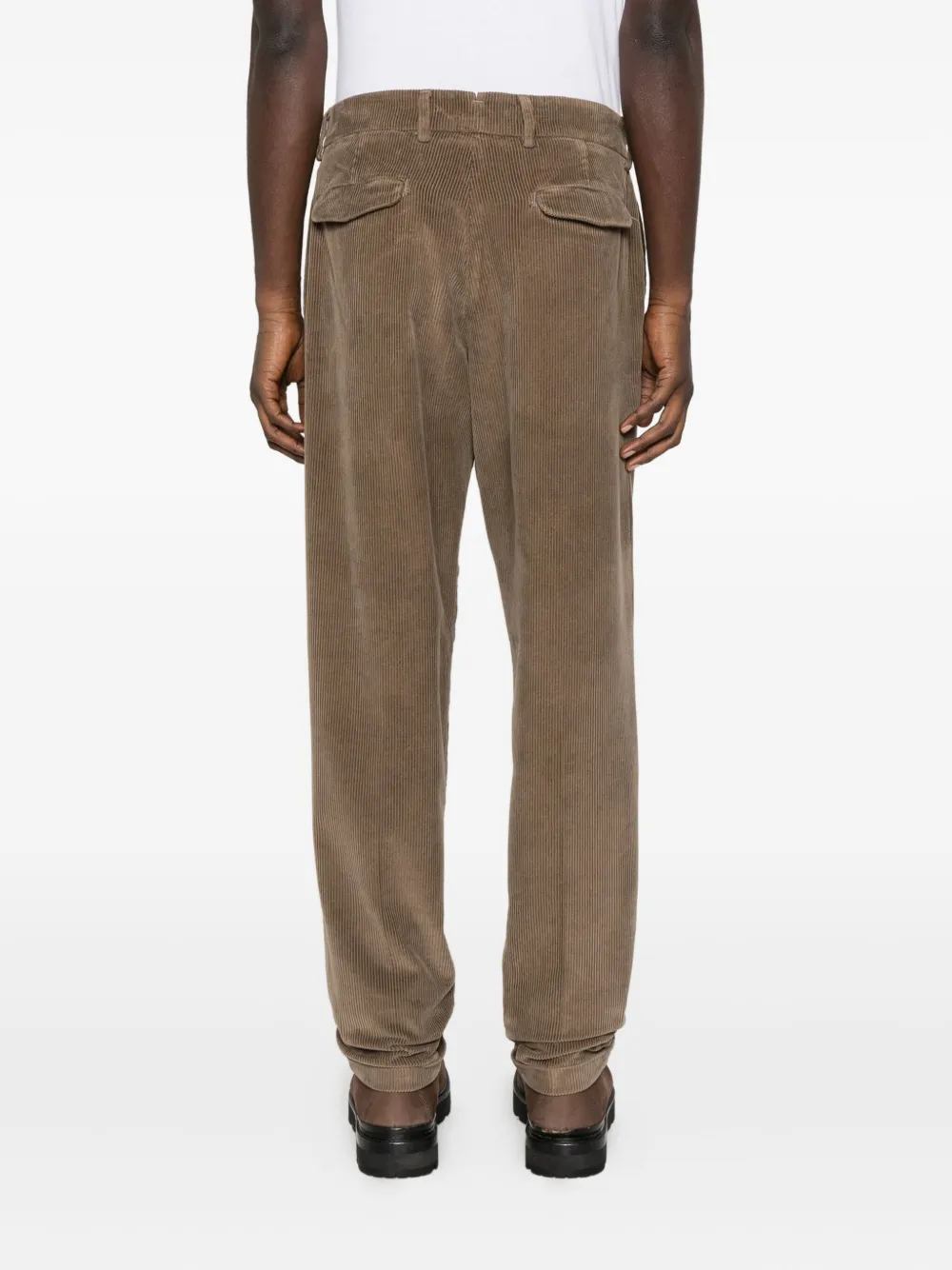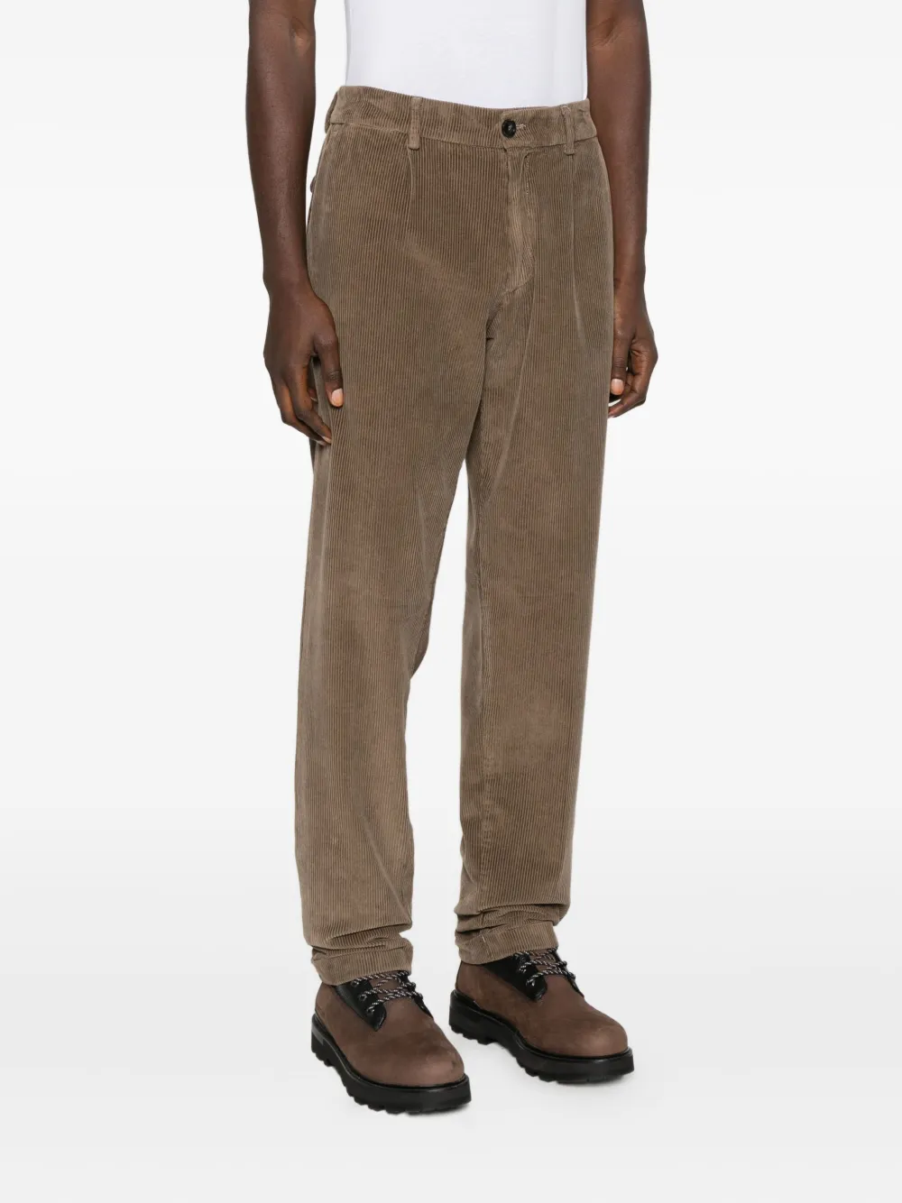 Цвет "серо-голубь"вельветовая текстураскладки спередизастежка на пуговицахбоковые прорезные карманыподвернутые края брюк