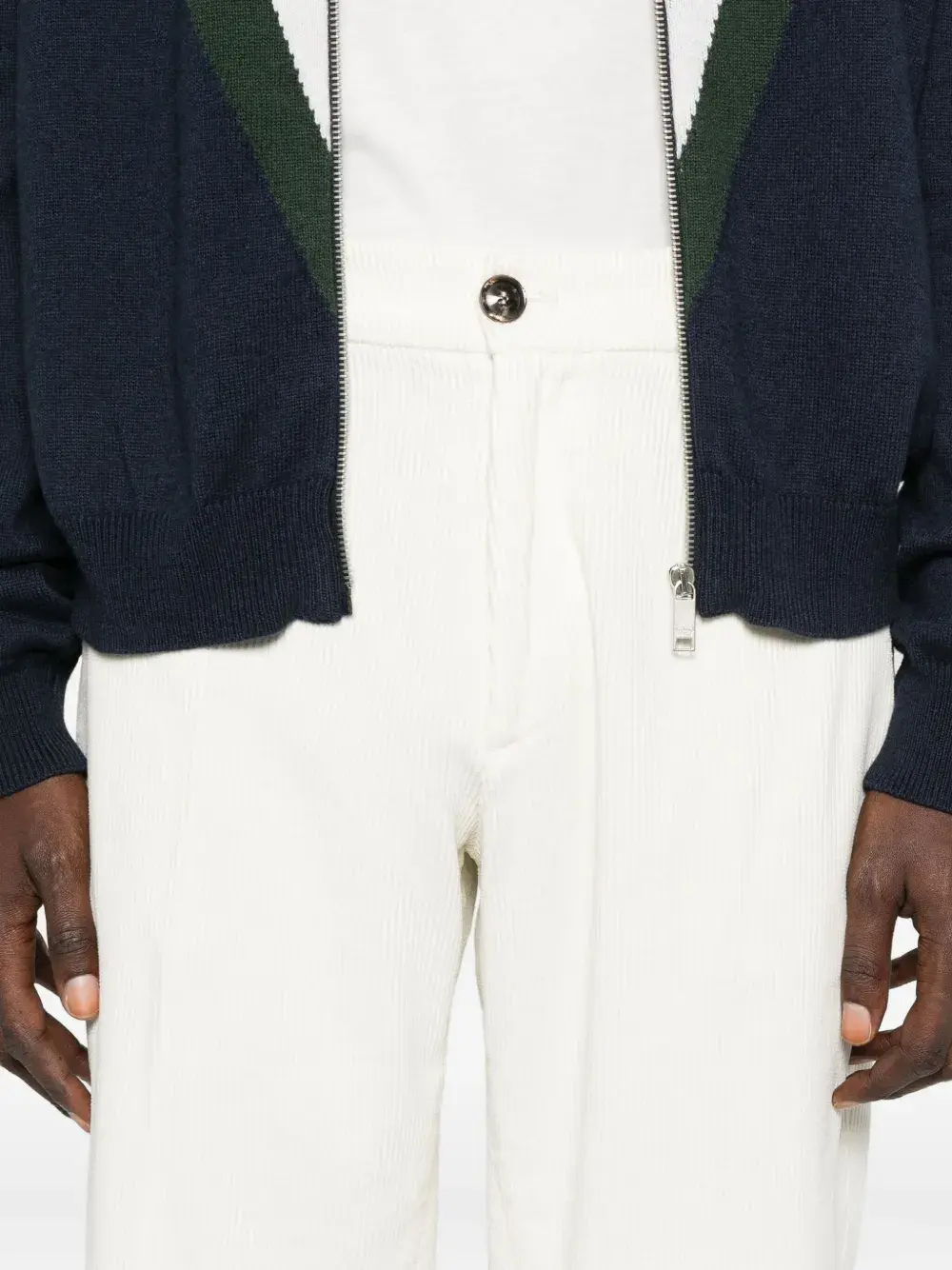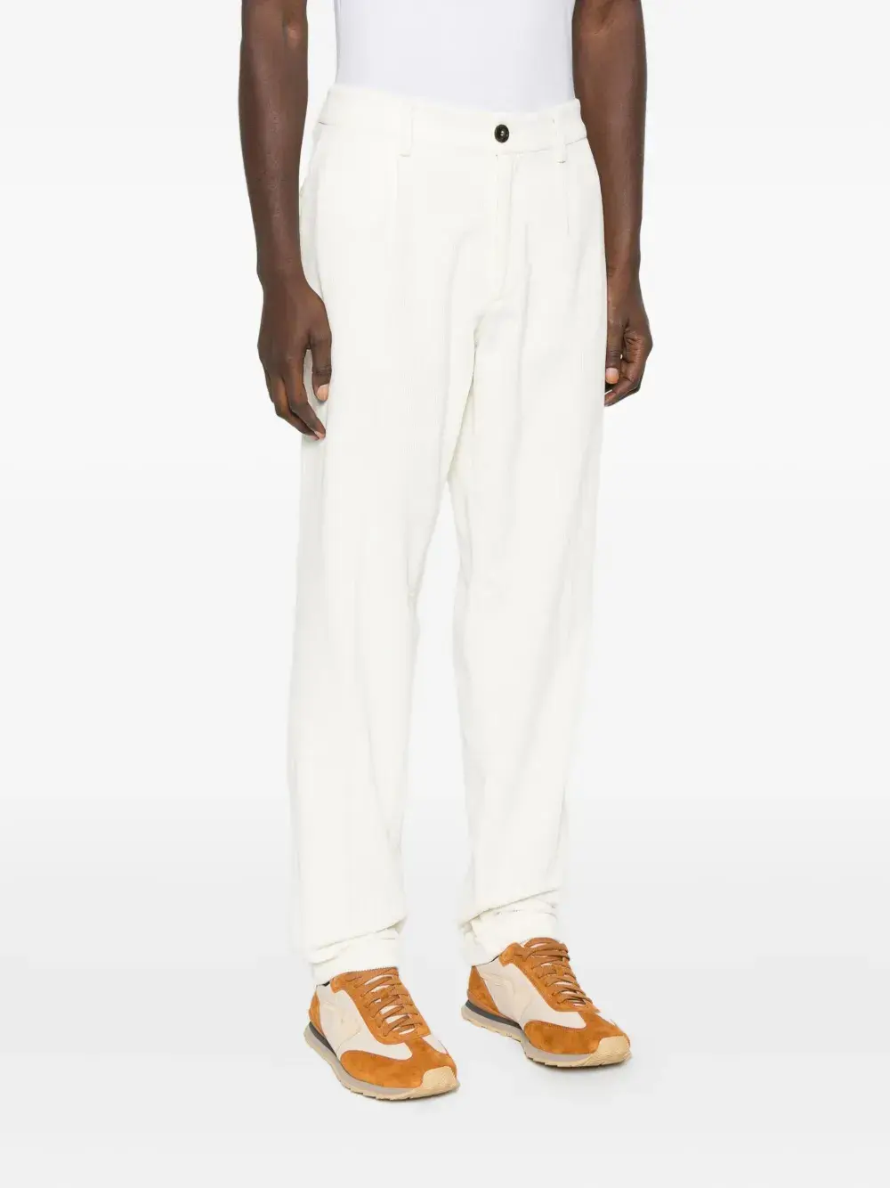 Белый плиссированная передняя часть пуговичная ширинка прямые брючины подвернутые края средняя посадка