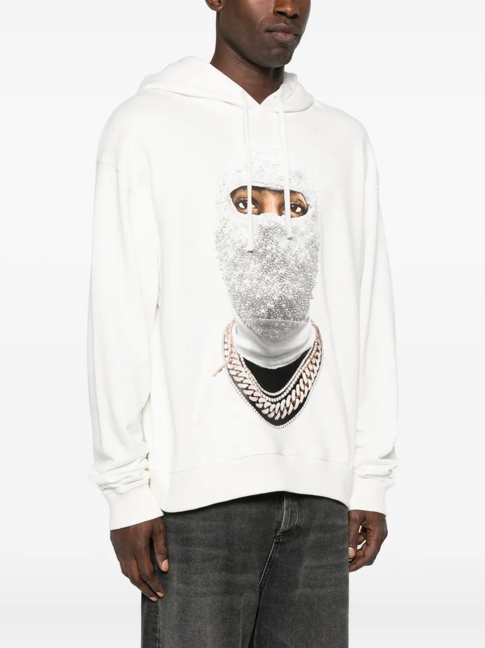 Белый капюшон графический принт длинные рукава эластичные манжеты и пояс