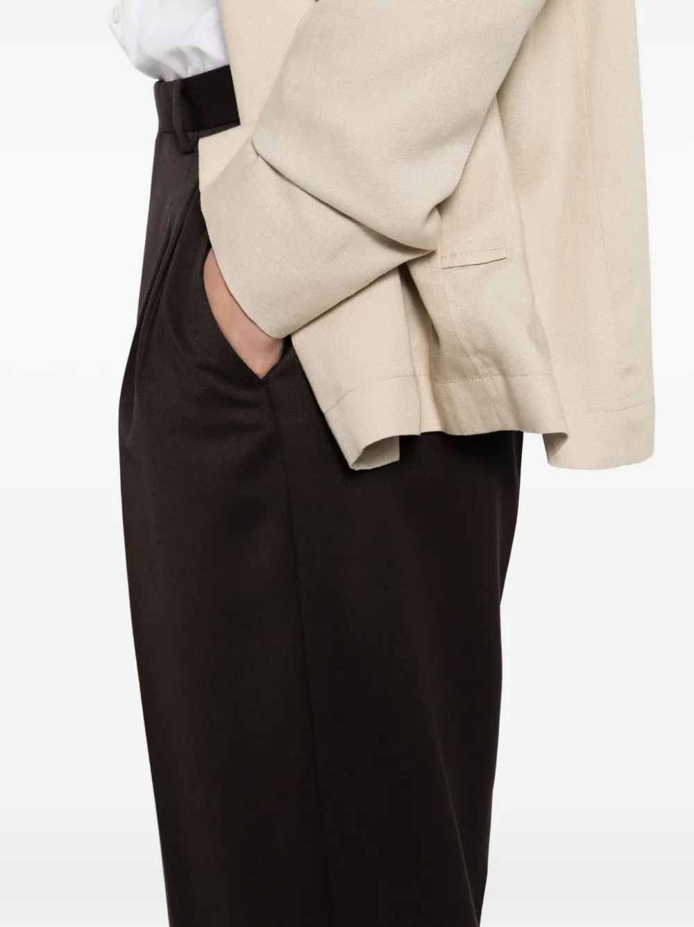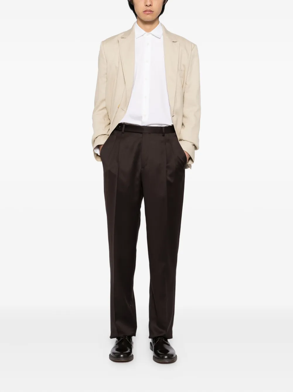 Кедрово-коричневый застежка спереди на пуговицу и молнию два боковых прорезных кармана два задних прорезных кармана съемный регулируемый пояс