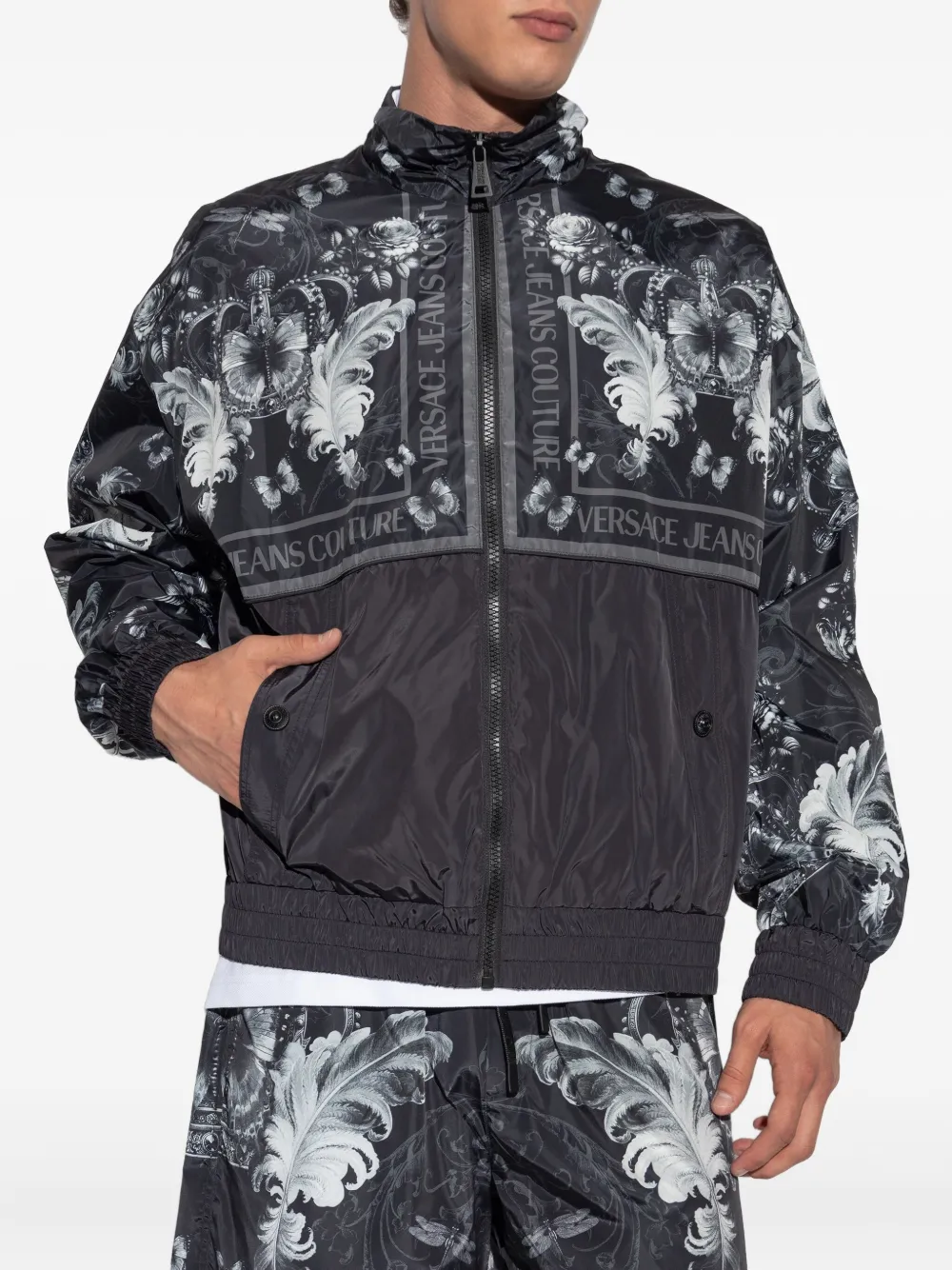 Куртка на молнии с принтом Baroque Versace Jeans Couture, черный