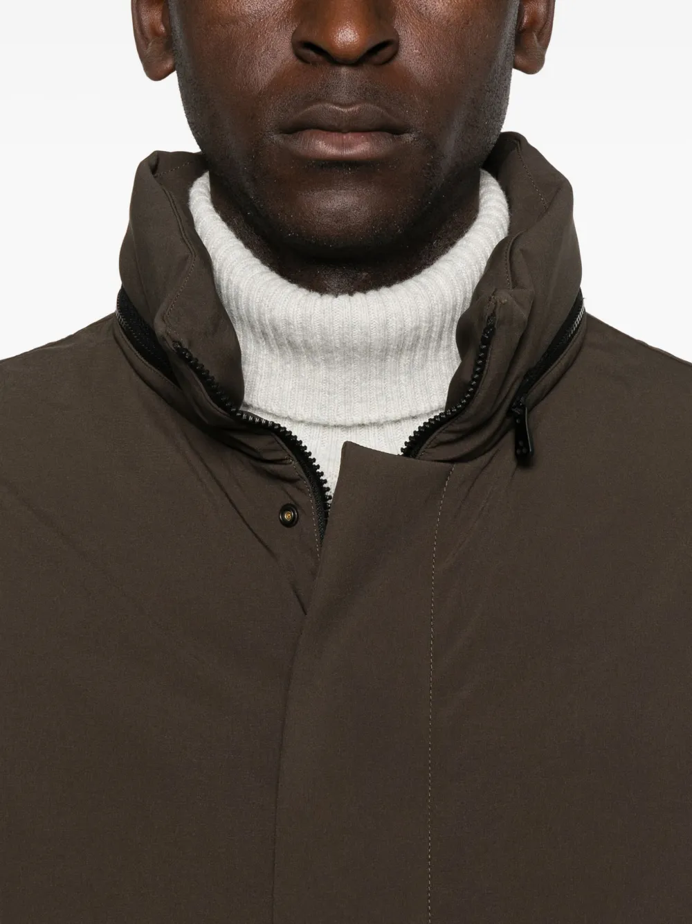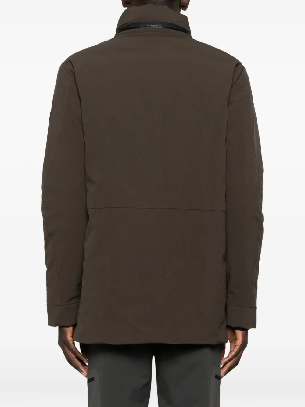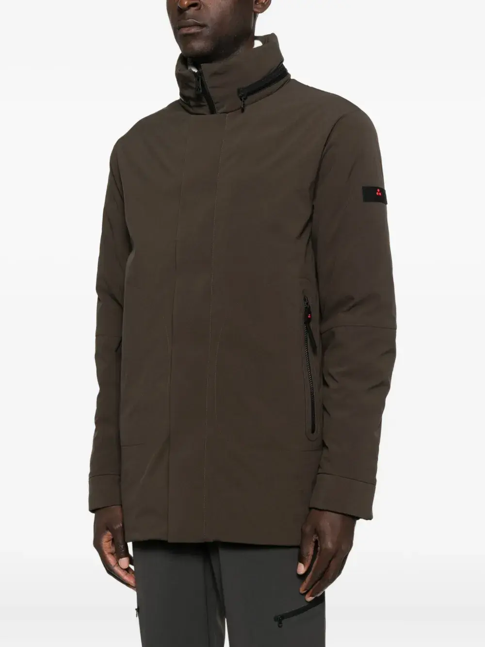 Коричневый застежка-молния спереди высокий воротник нашивка с логотипом боковые карманы на молнии длинные рукава