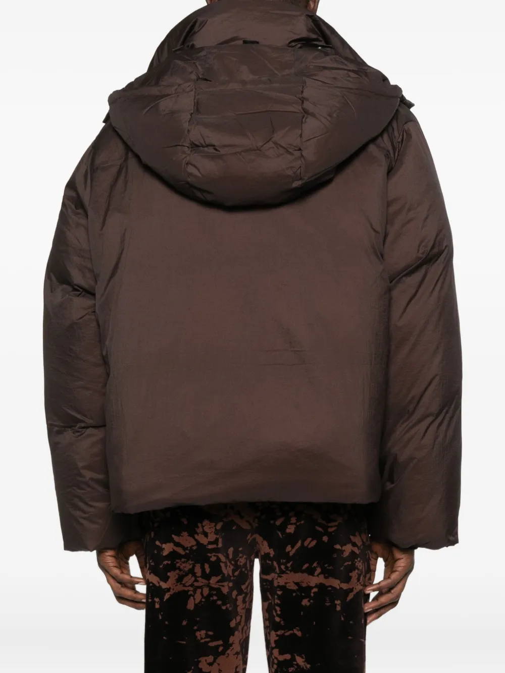 Темно-коричневый застежка-молния спереди капюшон боковые карманы на молнии коробчатый силуэт стеганый дизайн