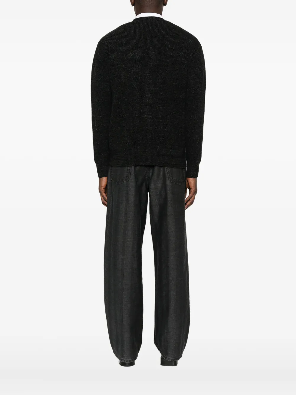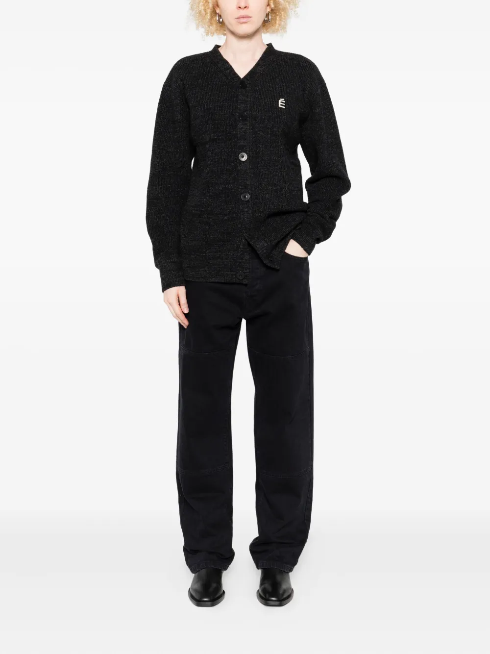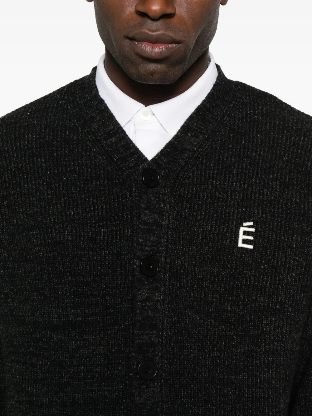 Черный вязаный в рубчик застежка на пуговицы спереди V-образный вырез длинные рукава вышитый логотип