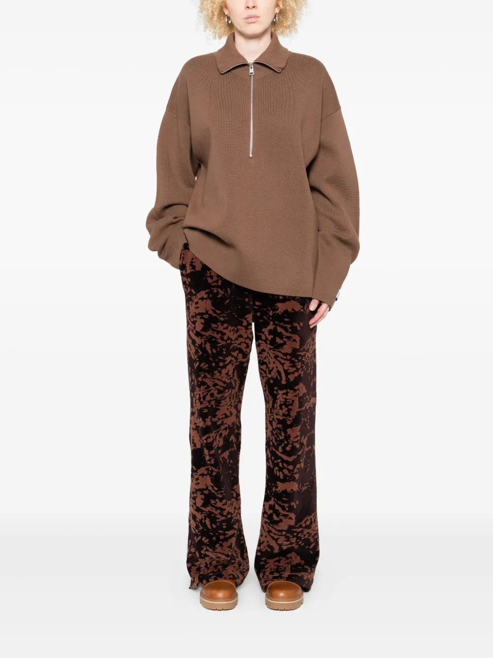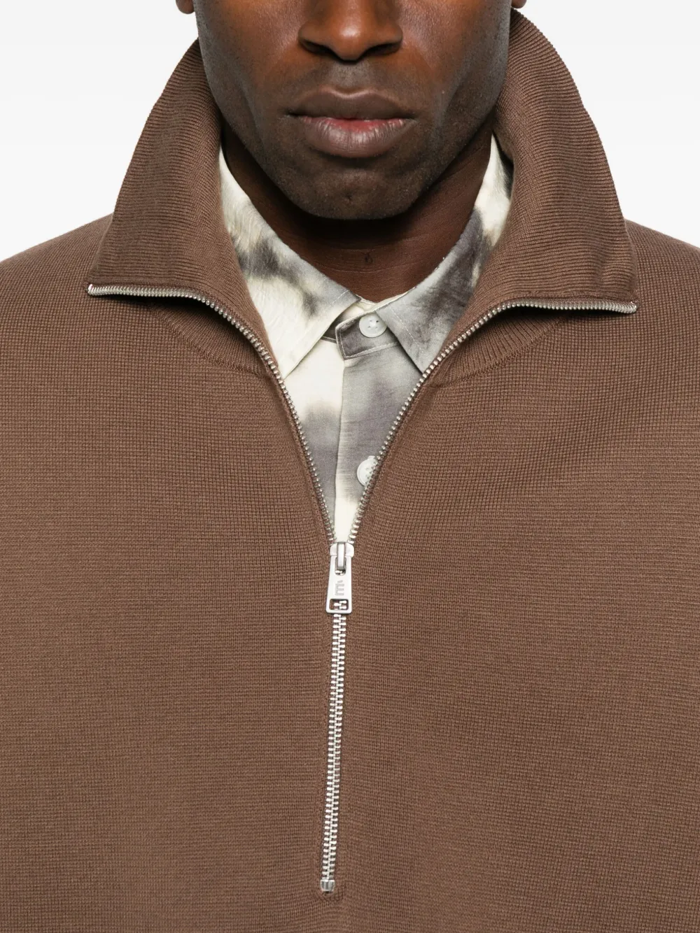 Коричневый застежка-молния до половины длины рубчатые манжеты