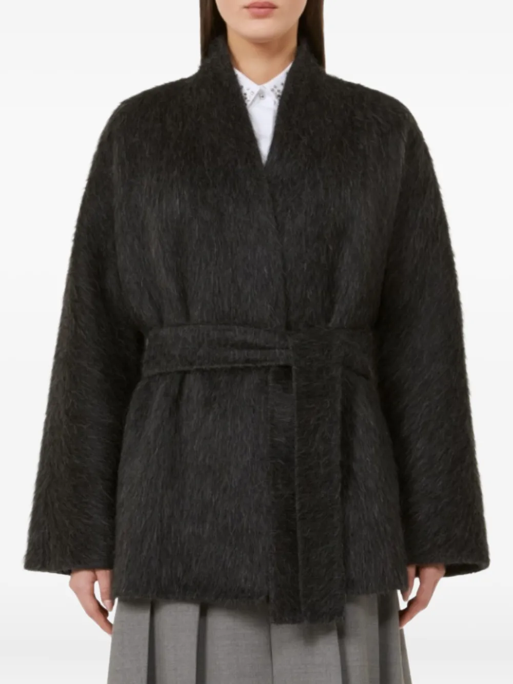 Пальто с поясом MAX MARA, серый