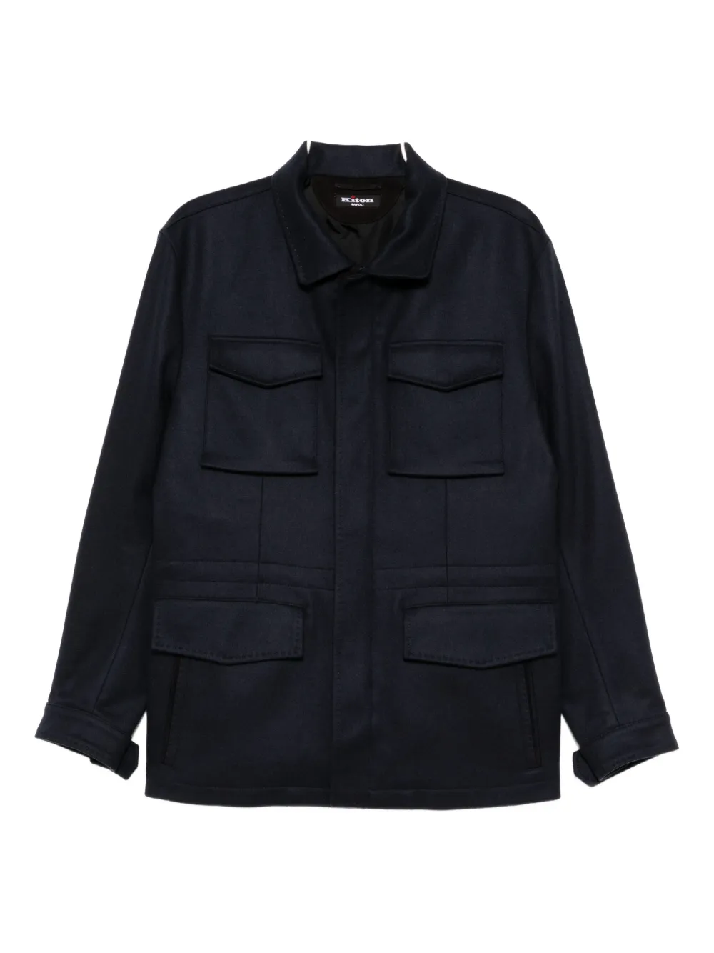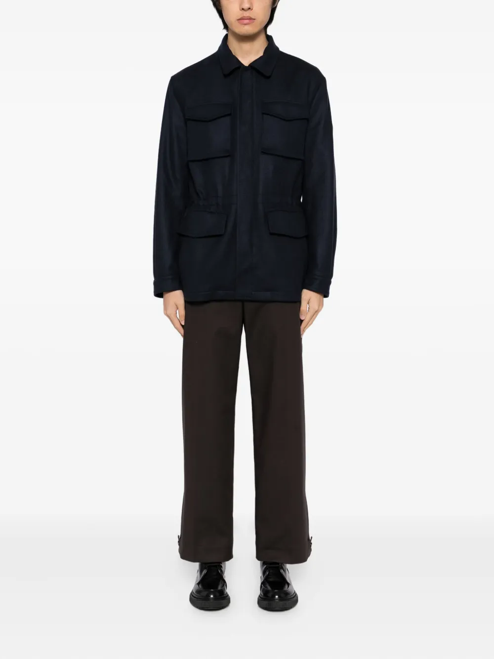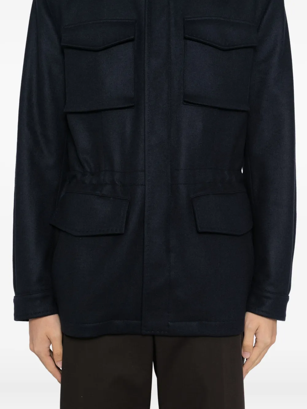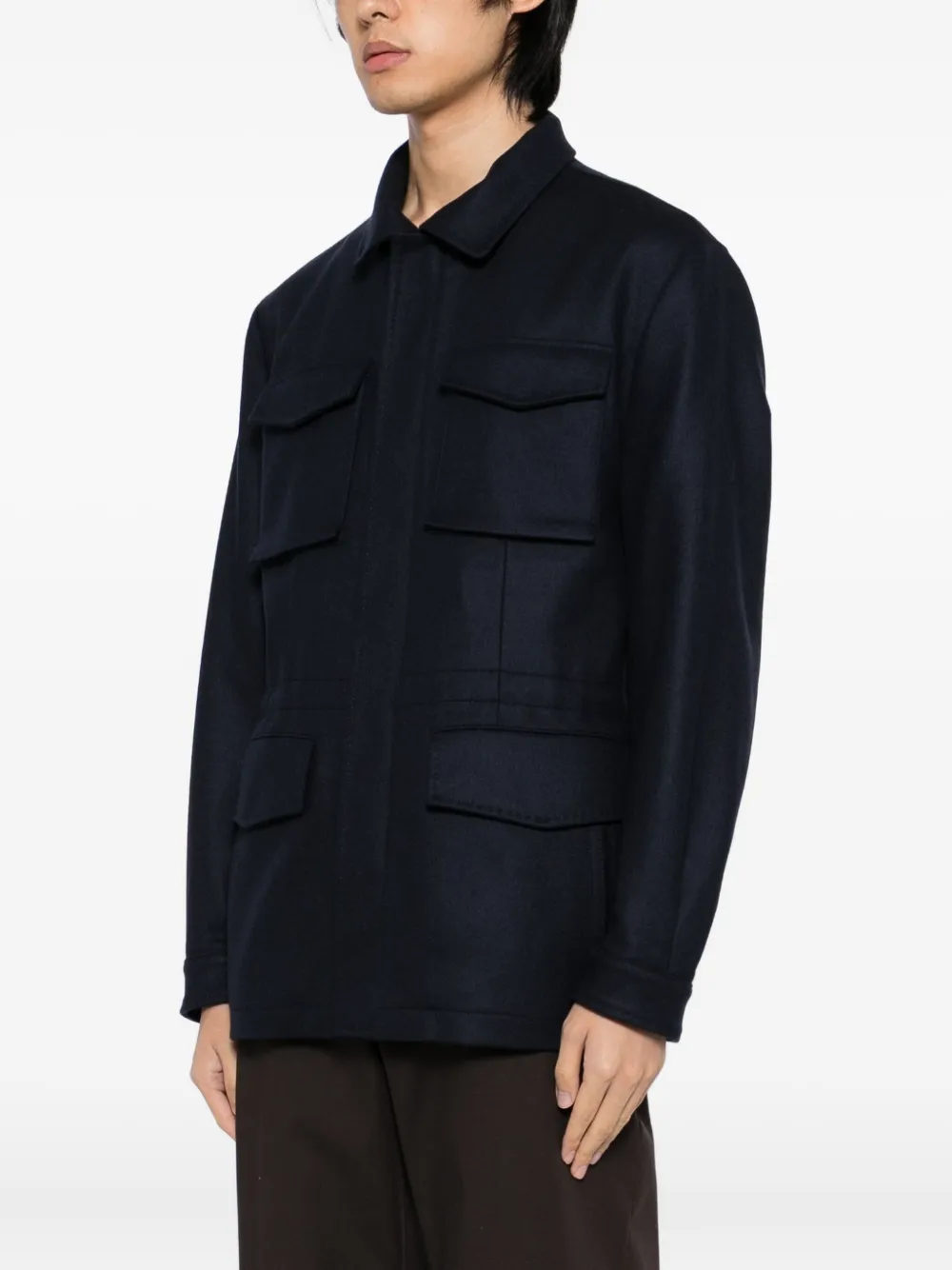 Темно-синий застежка спереди на пуговицы и молнию четыре накладных кармана спереди с клапанами длинные рукава