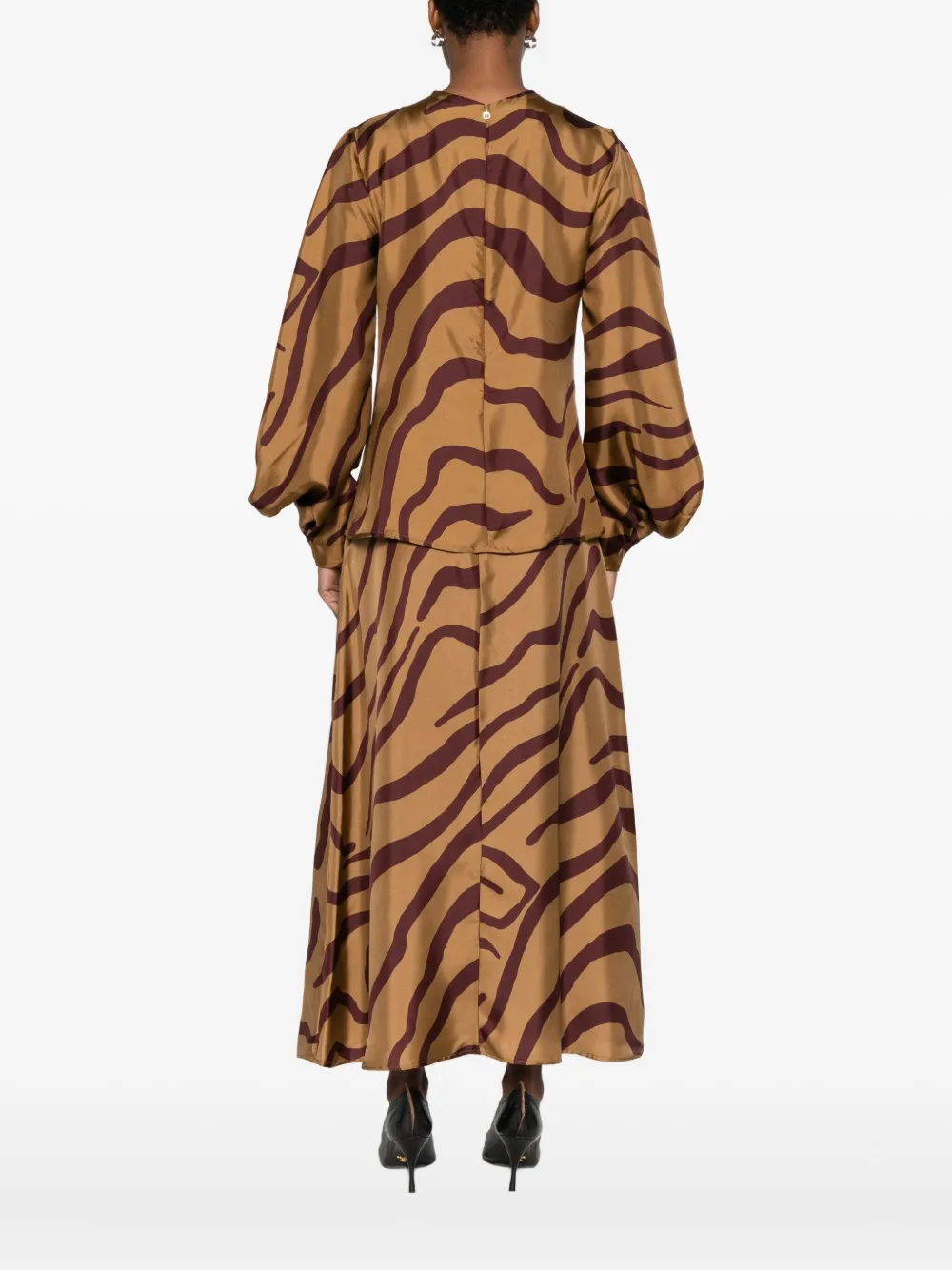 Бежевый/коричневый зебровый принт рукава-буфы круглый вырез