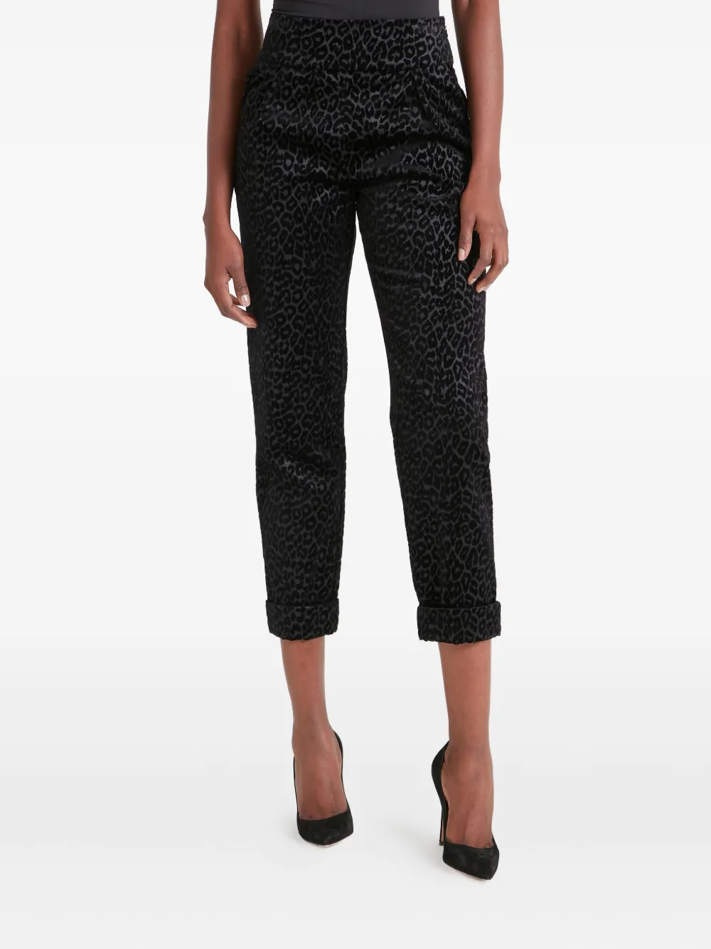 Бархатные брюки с леопардовым принтом Temperley London, черный