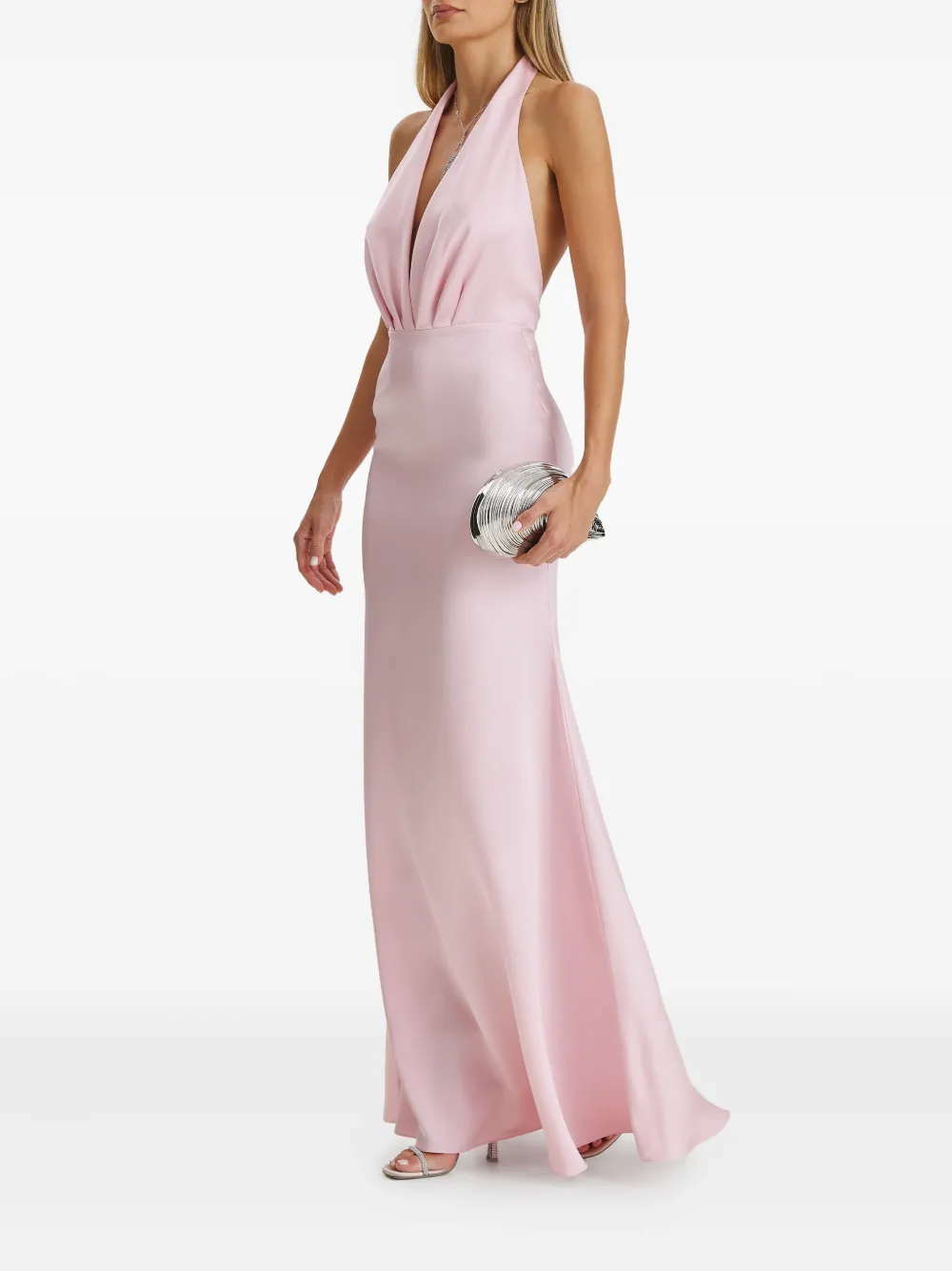 Припыленно-розовый шейный бретель драпированный лиф открытая спина юбка в пол юбка А-силуэта