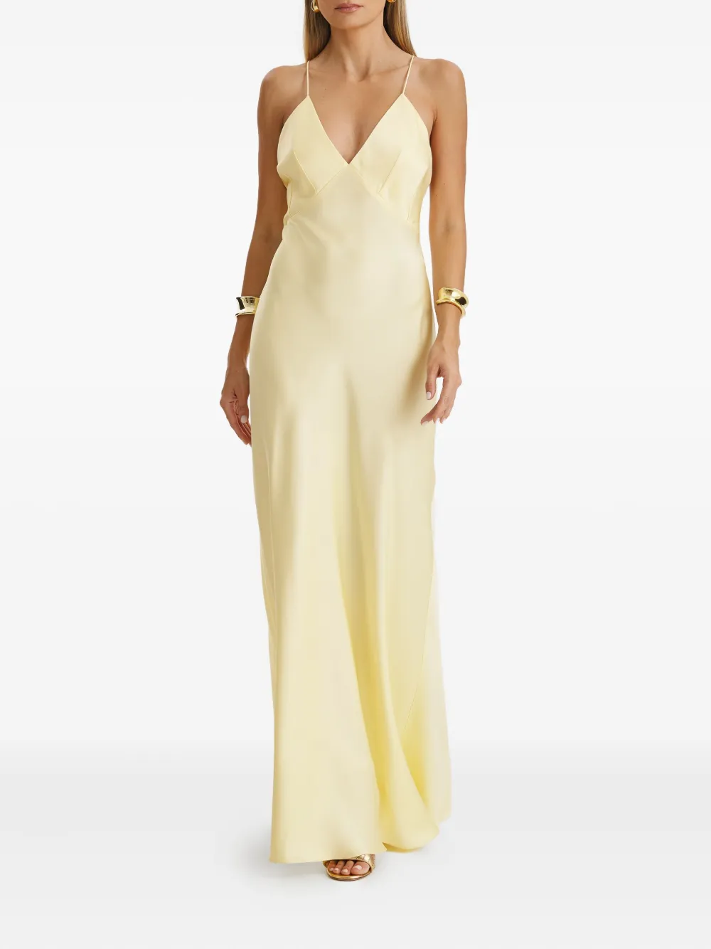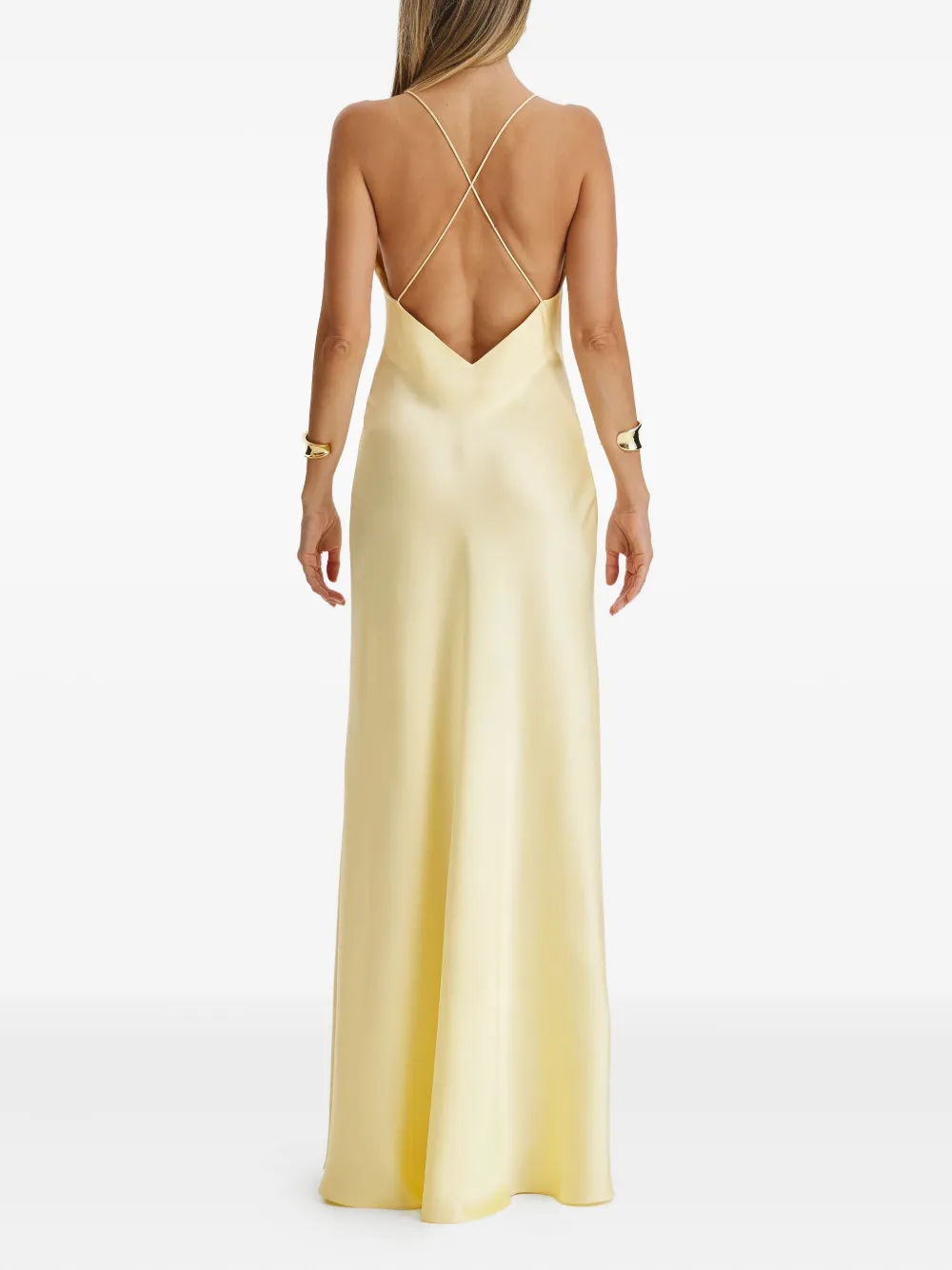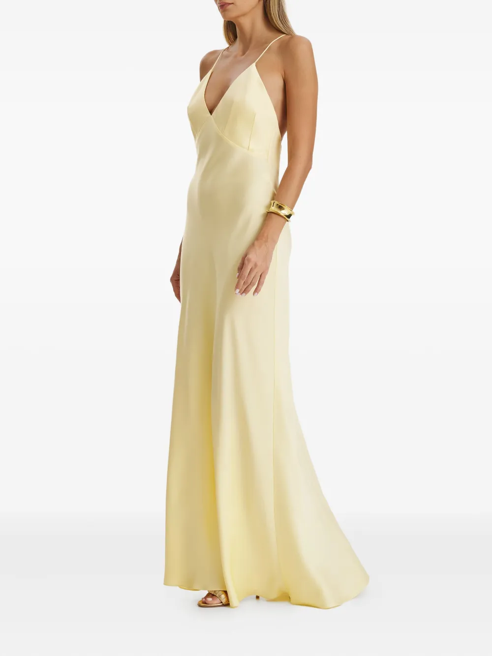 Бледно-желтый тонкие бретели V-образный вырез бретели крест-накрест на спине в пол косой крой