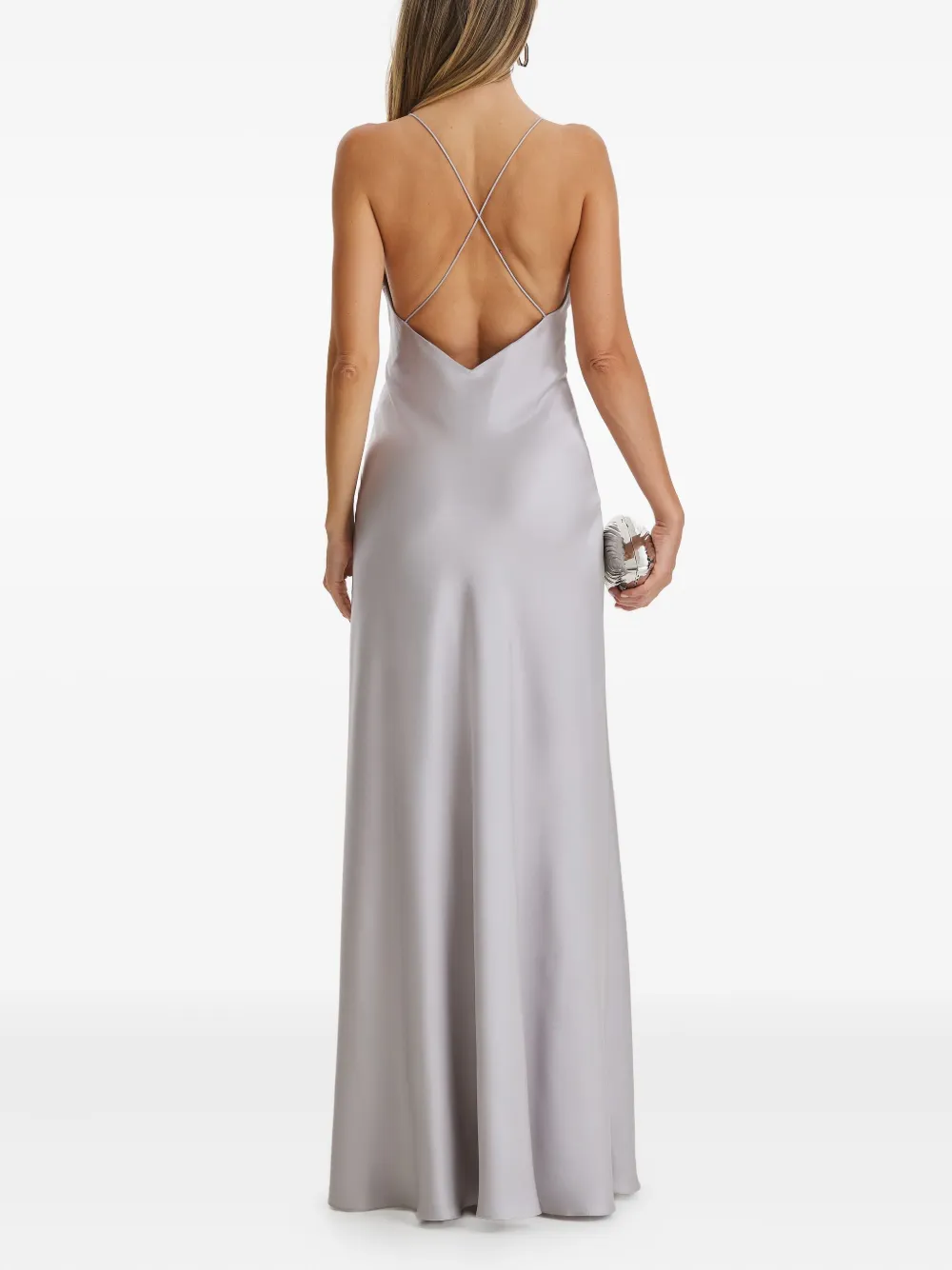 Серый тонкие бретельки V-образный вырез открытая спина макси-длина