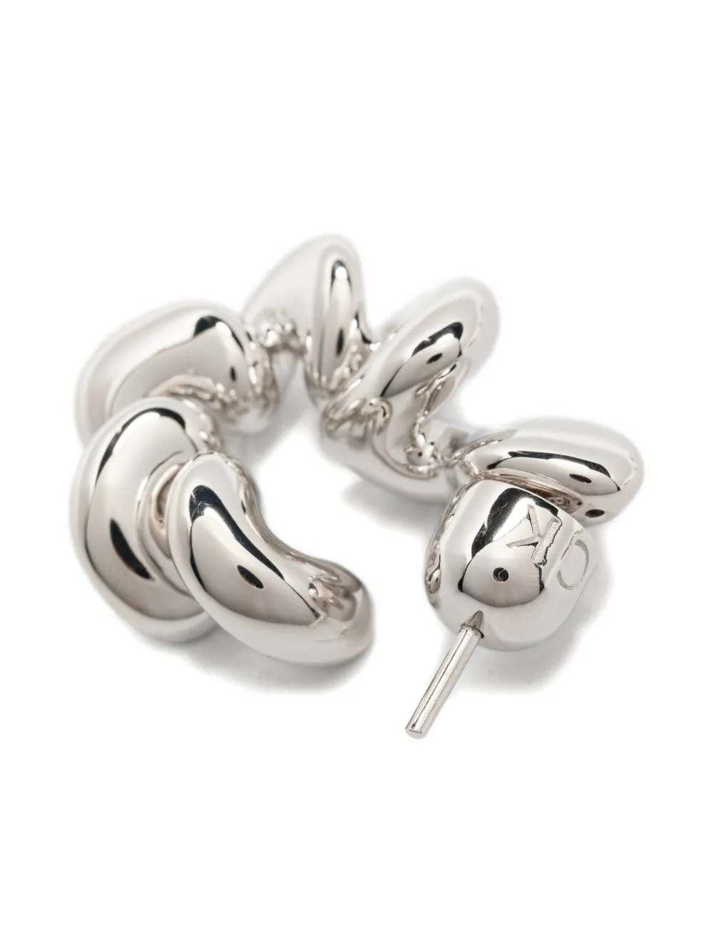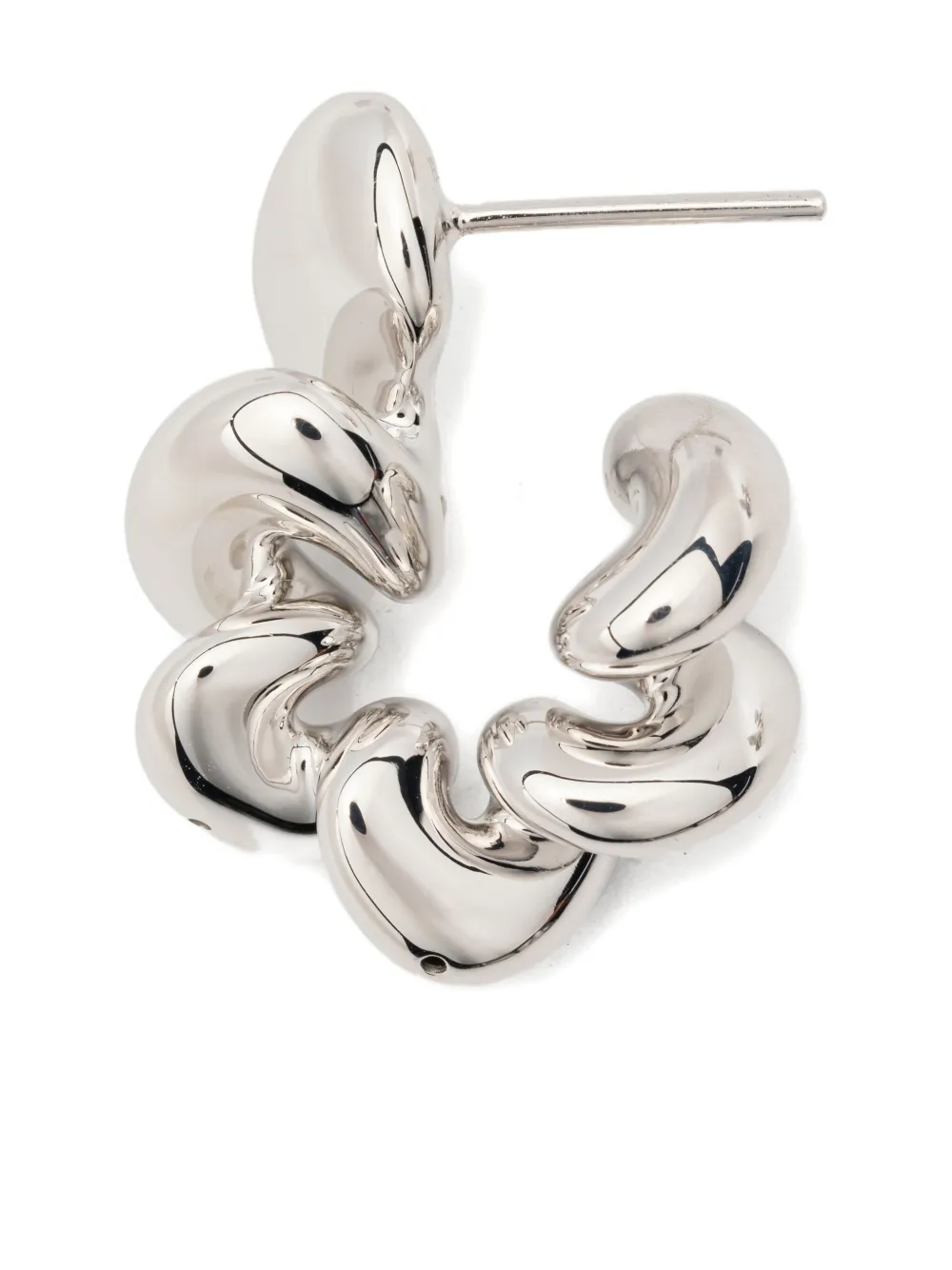 Подробнее о товаре: • silver-tone • medium hoops • curved design • smooth finish • post fastening • organic form • These earrings come as a pair. • Normal everyday use and external agents may reduce the lustre of gemstones and gold surfaces. To maintain, use specific, non-abrasive products specially meant for cleaning jewellery.