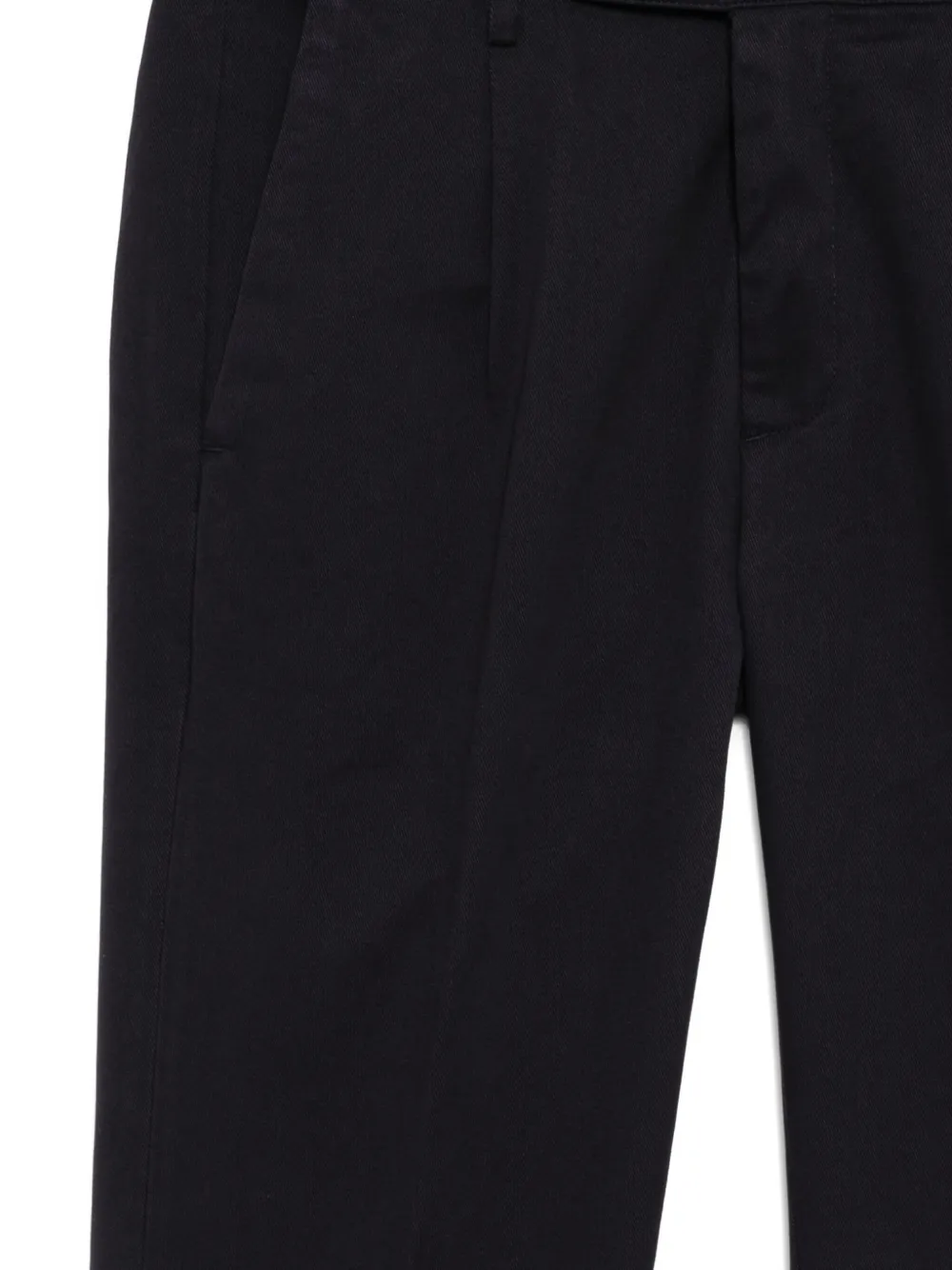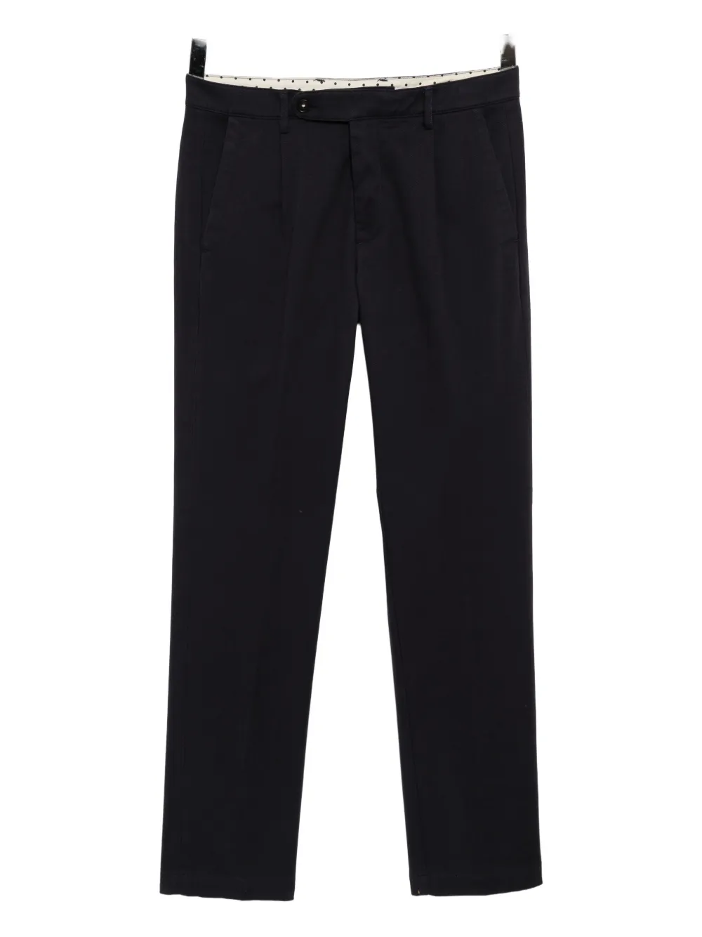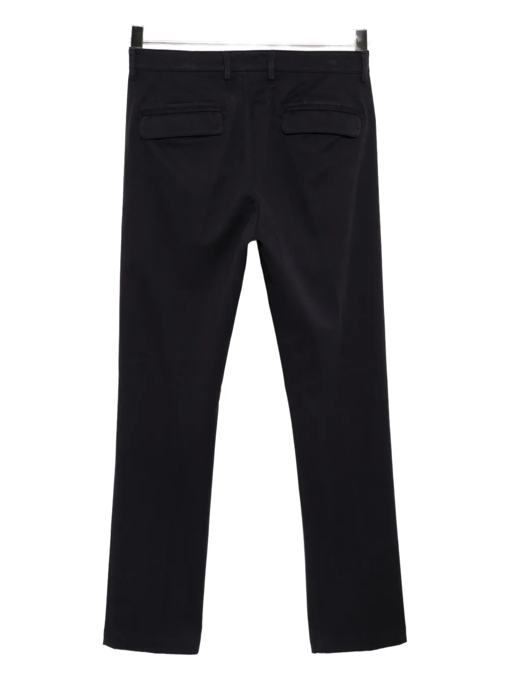 Темно-синий застежка спереди на пуговицу и молнию два боковых прорезных кармана два задних кармана с клапанами