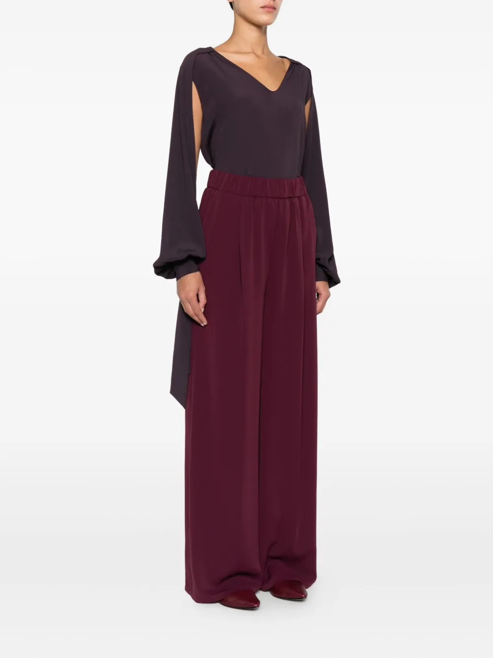 Фиолетовый широкие брюки эластичный пояс скрытая застежка на пуговицу прямой низ гладкая передняя часть