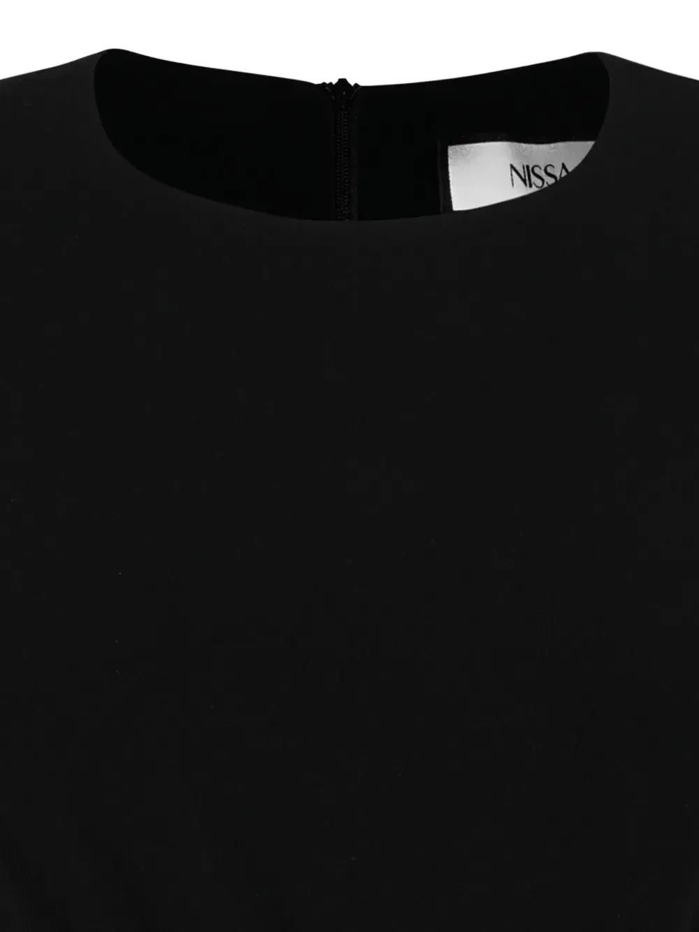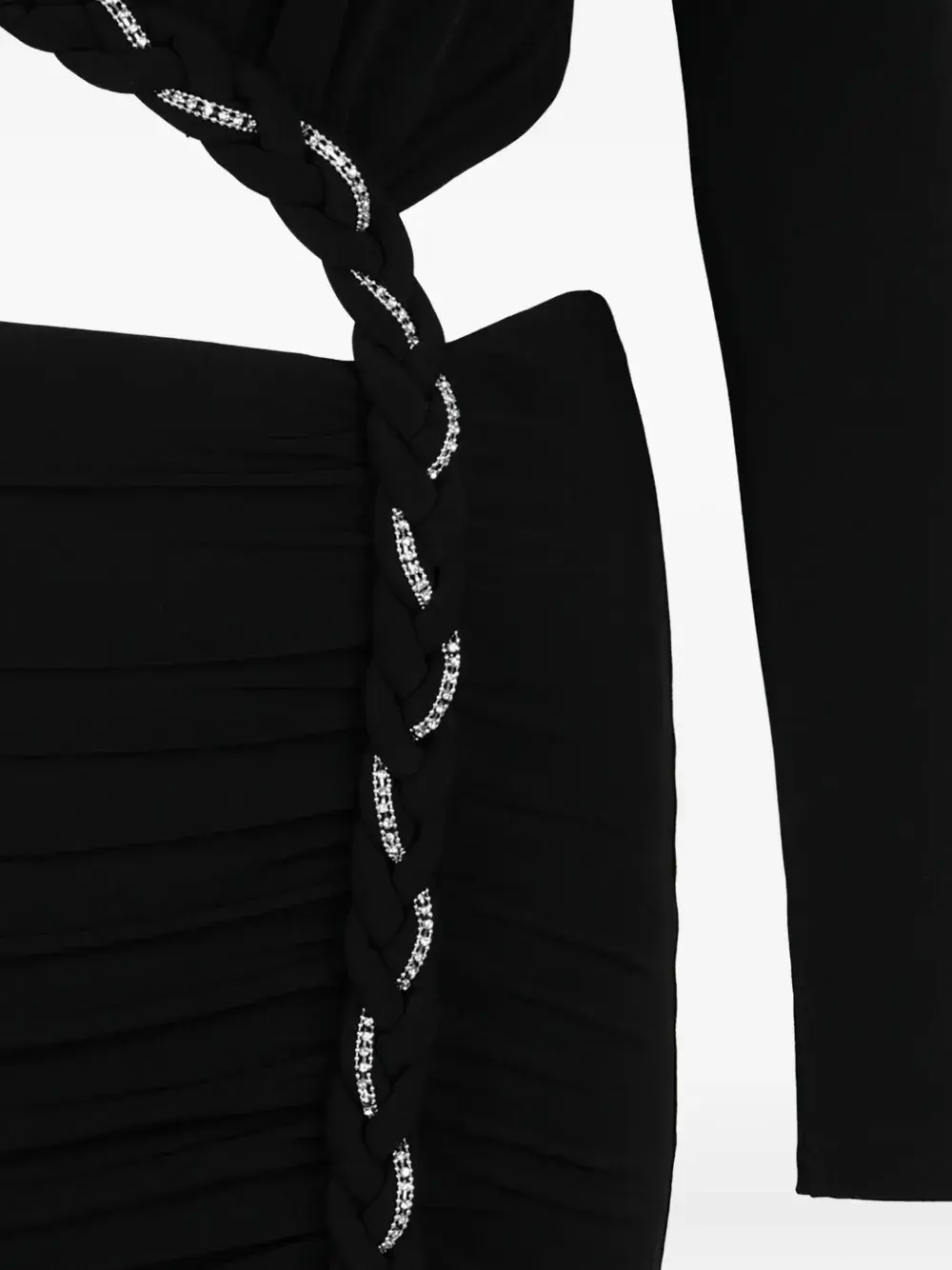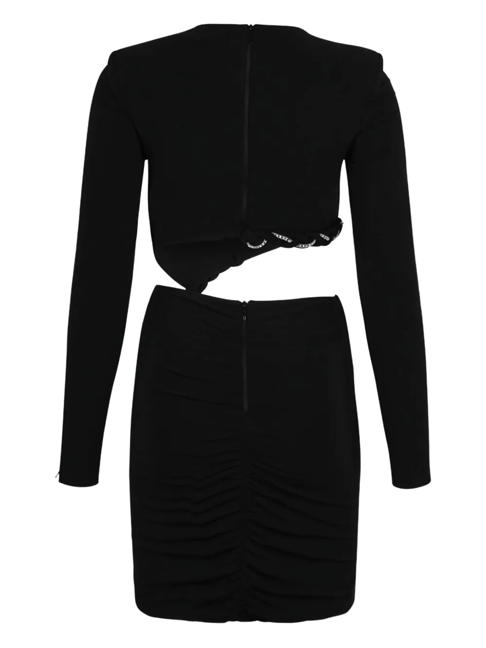 Черный цвет, круглый вырез, длинные рукава, застежка-молния, плетеные детали, драпировка