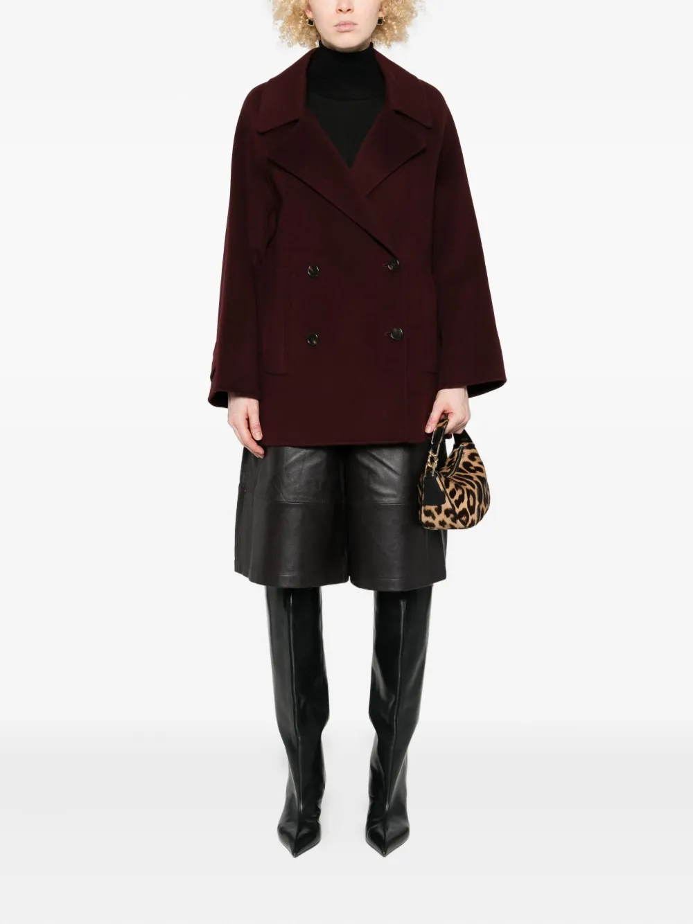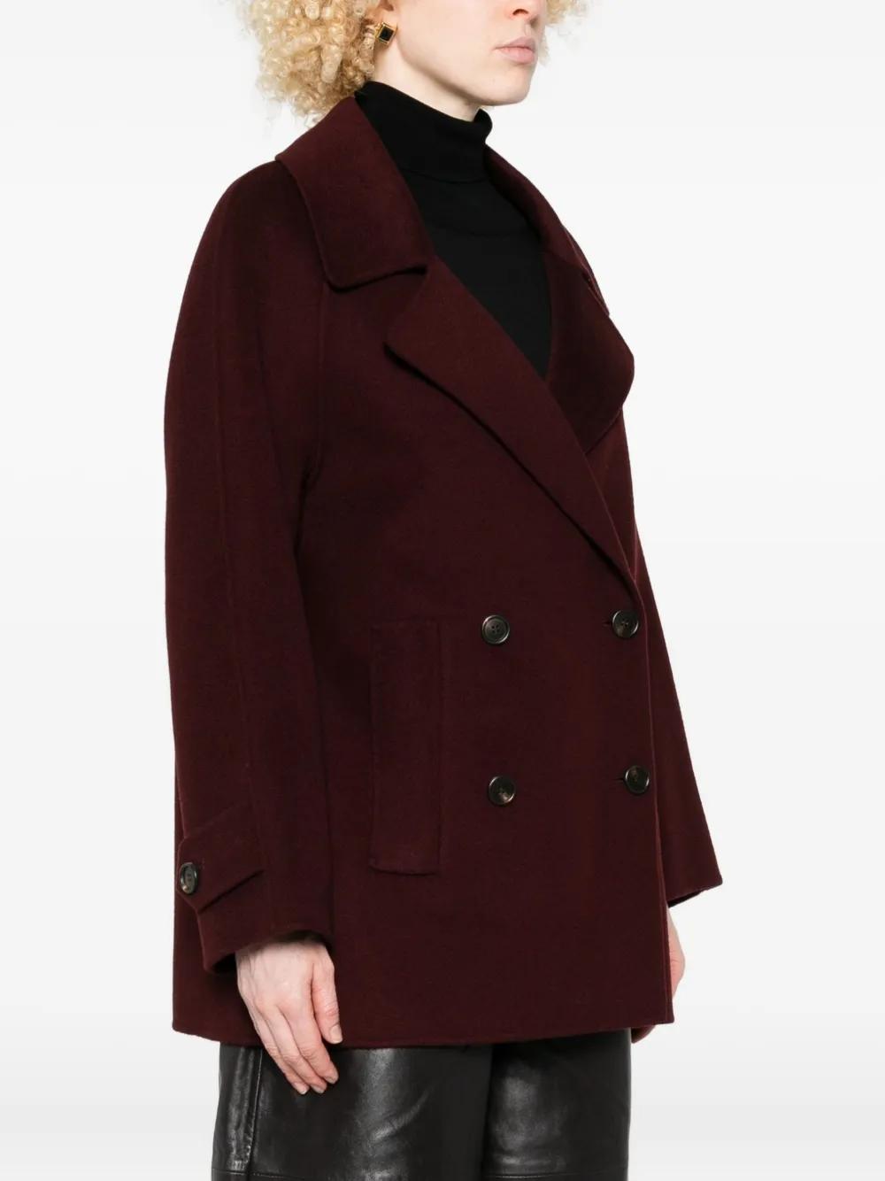 Бордовый двубортный застежка на пуговицы воротник с лацканами карманы с листочками длинные рукава