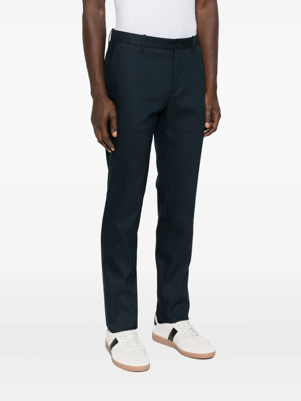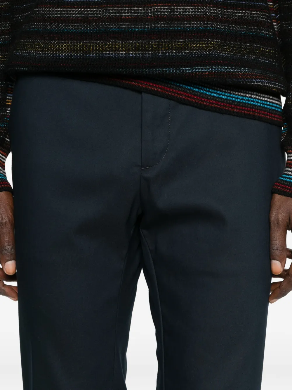 Темно-синие прямые брюки с эластичным поясом, гульфиком на пуговицах, без складок и боковыми карманами