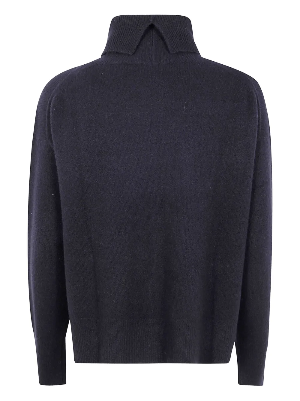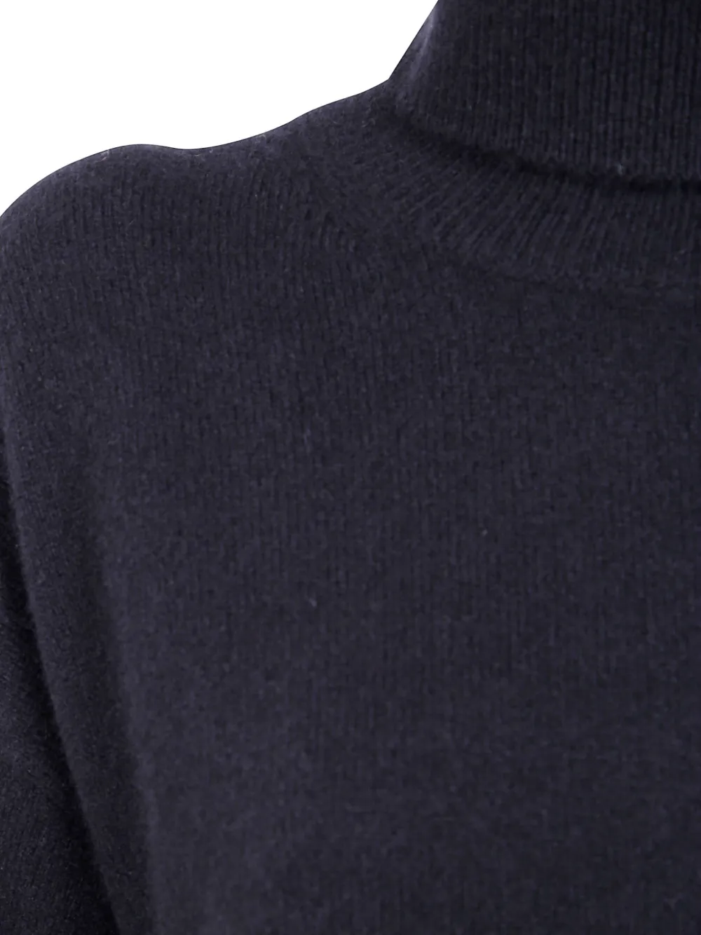 Черный смесь кашемира воротник-стойка (гольф) спущенная линия плеч длинные рукава
