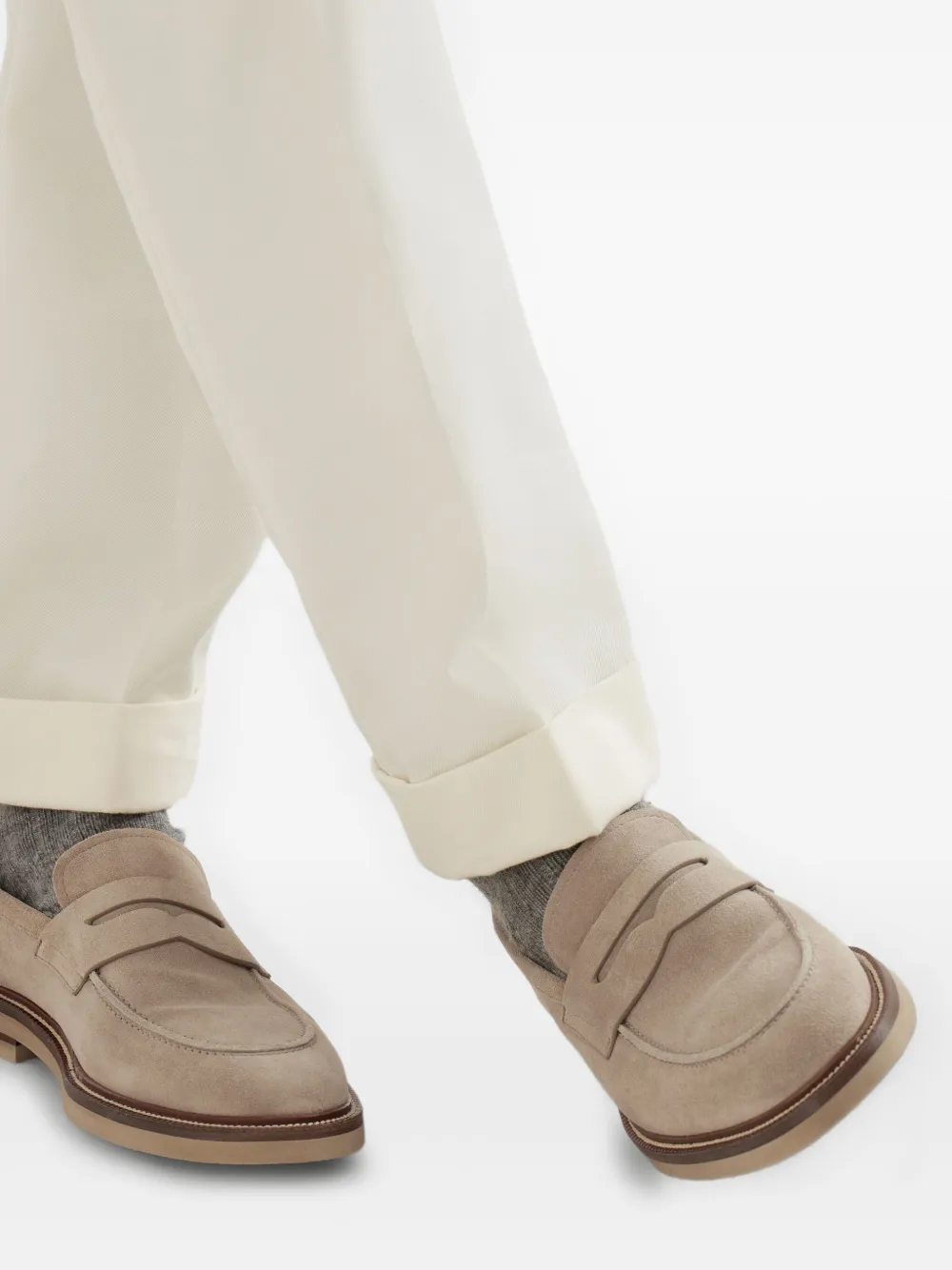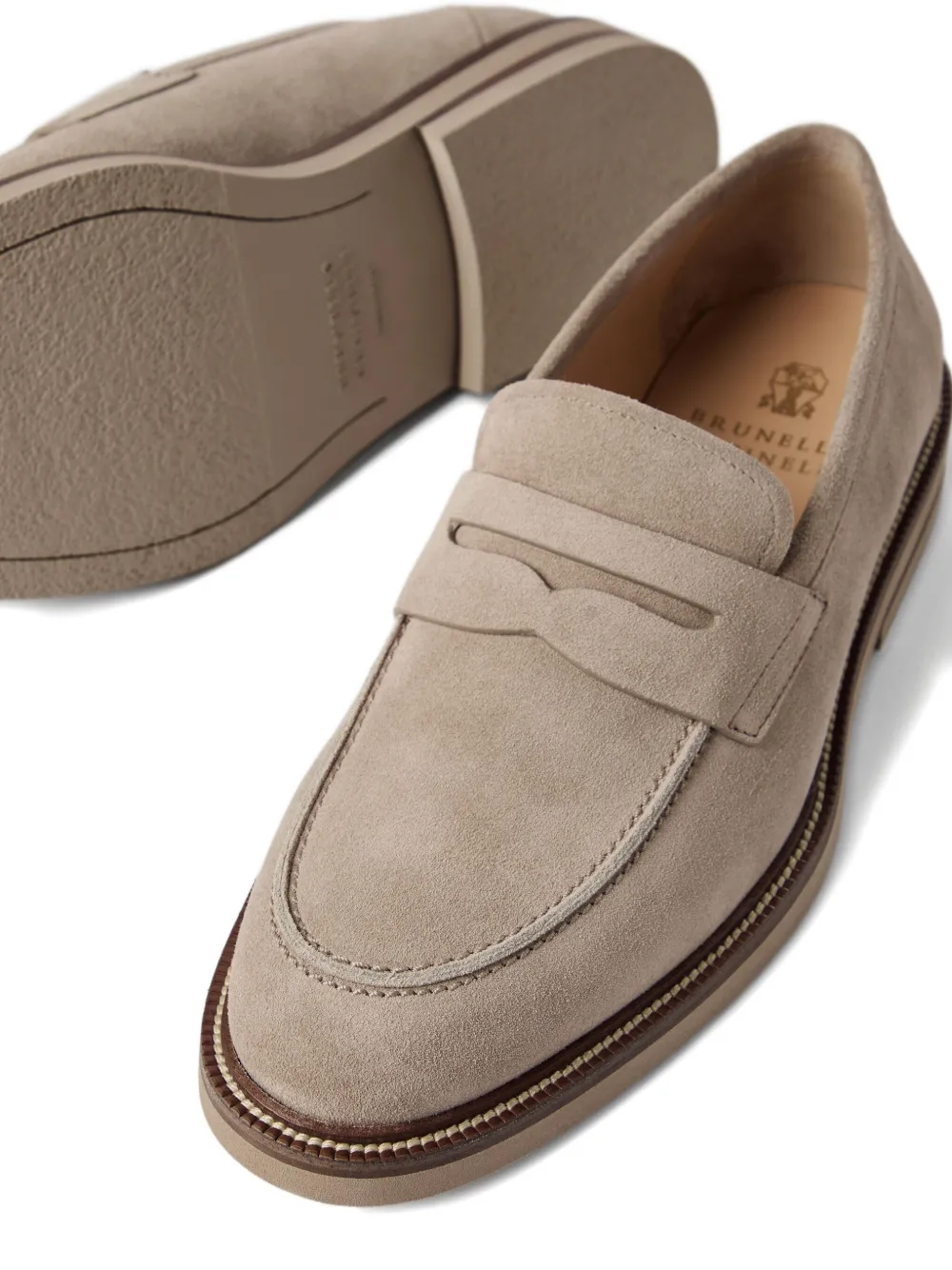 Замшевые пенни-лоферы Brunello Cucinelli, нейтральный