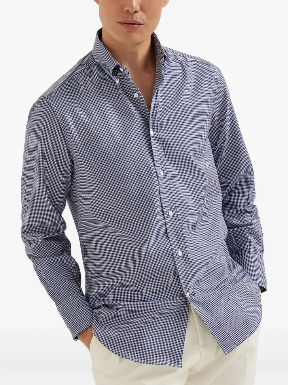 Рубашка в клетку гингем Brunello Cucinelli, синий