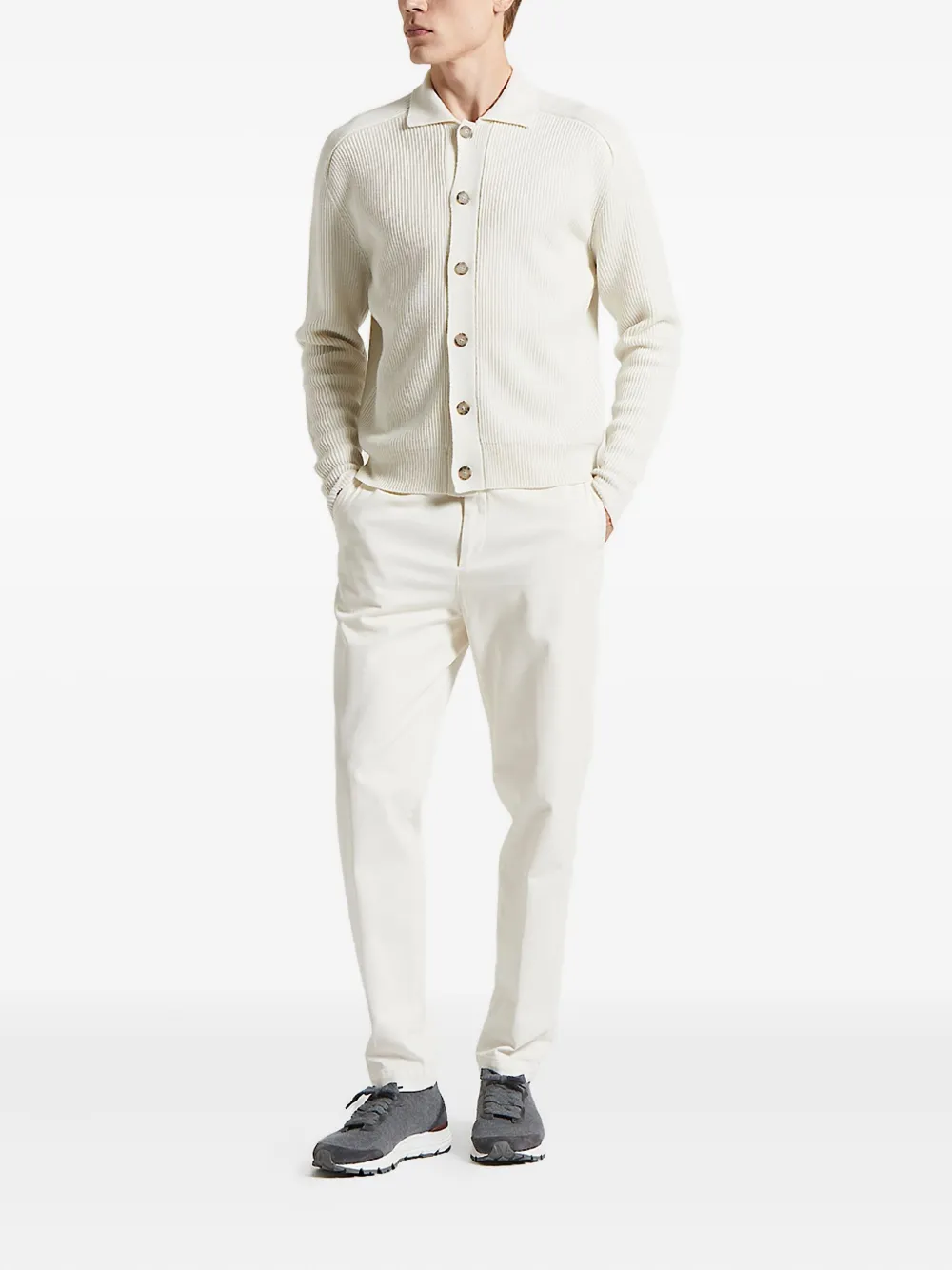 Кардиган в рубчик с воротником поло Peserico, белый
