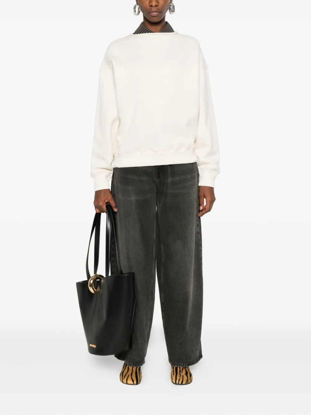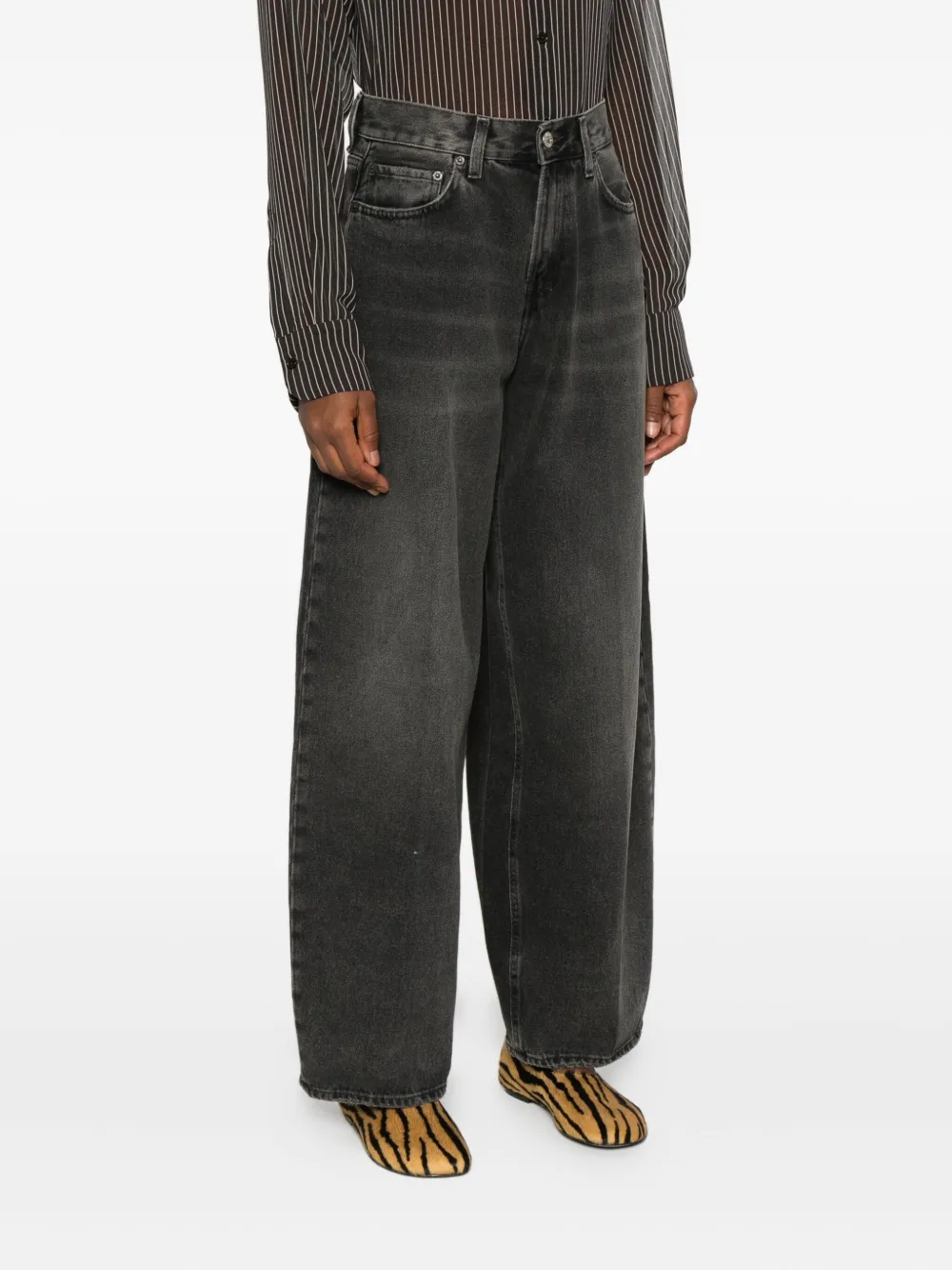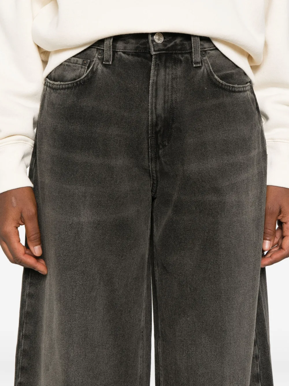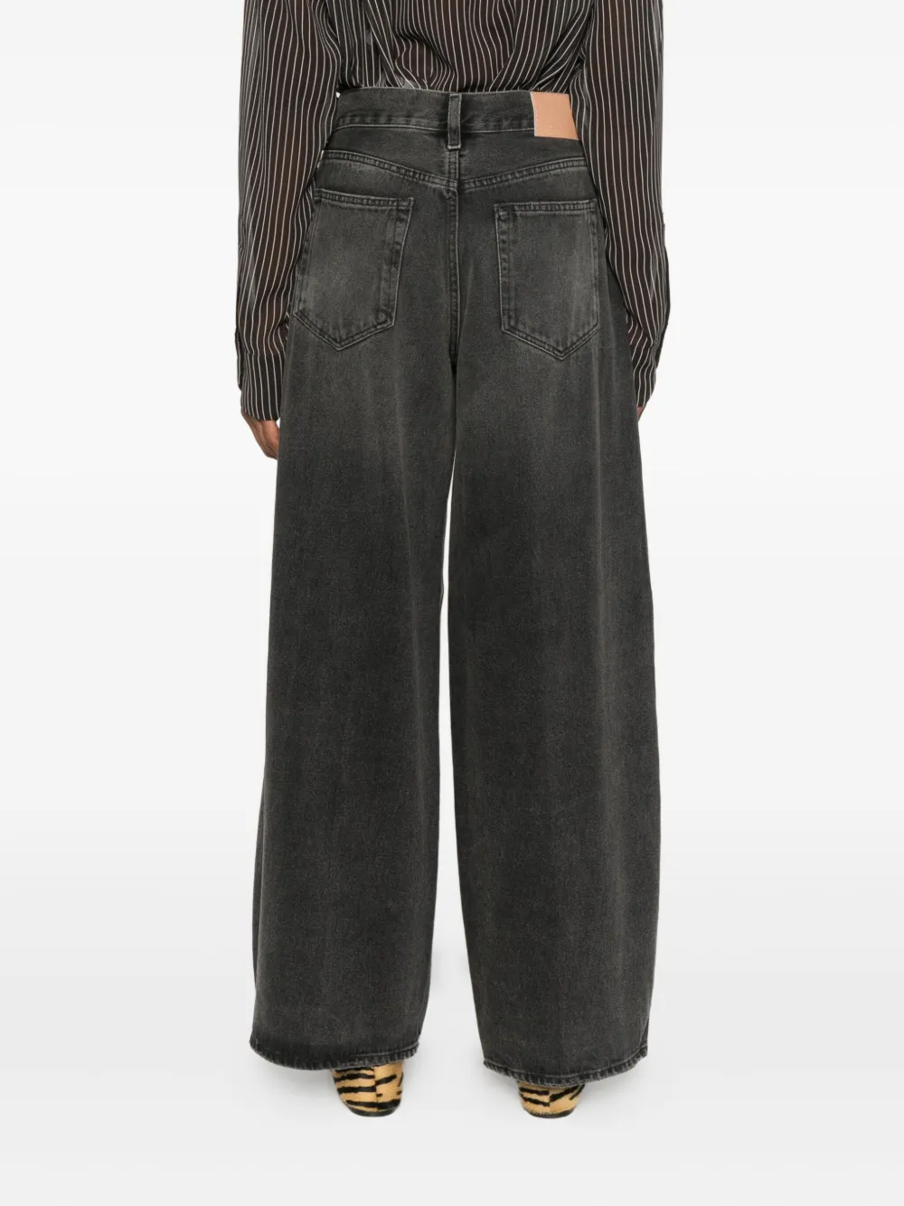 Черные потертые широкие брюки с высокой талией, пятью карманами, застежкой на пуговицах и прямым низом