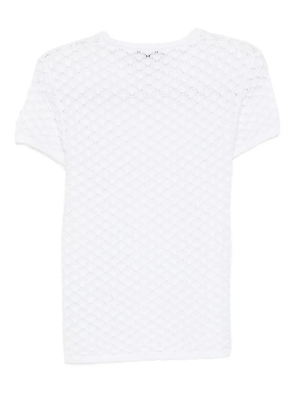 Белый круглый вырез короткие рукава прямой край ажурная вязка