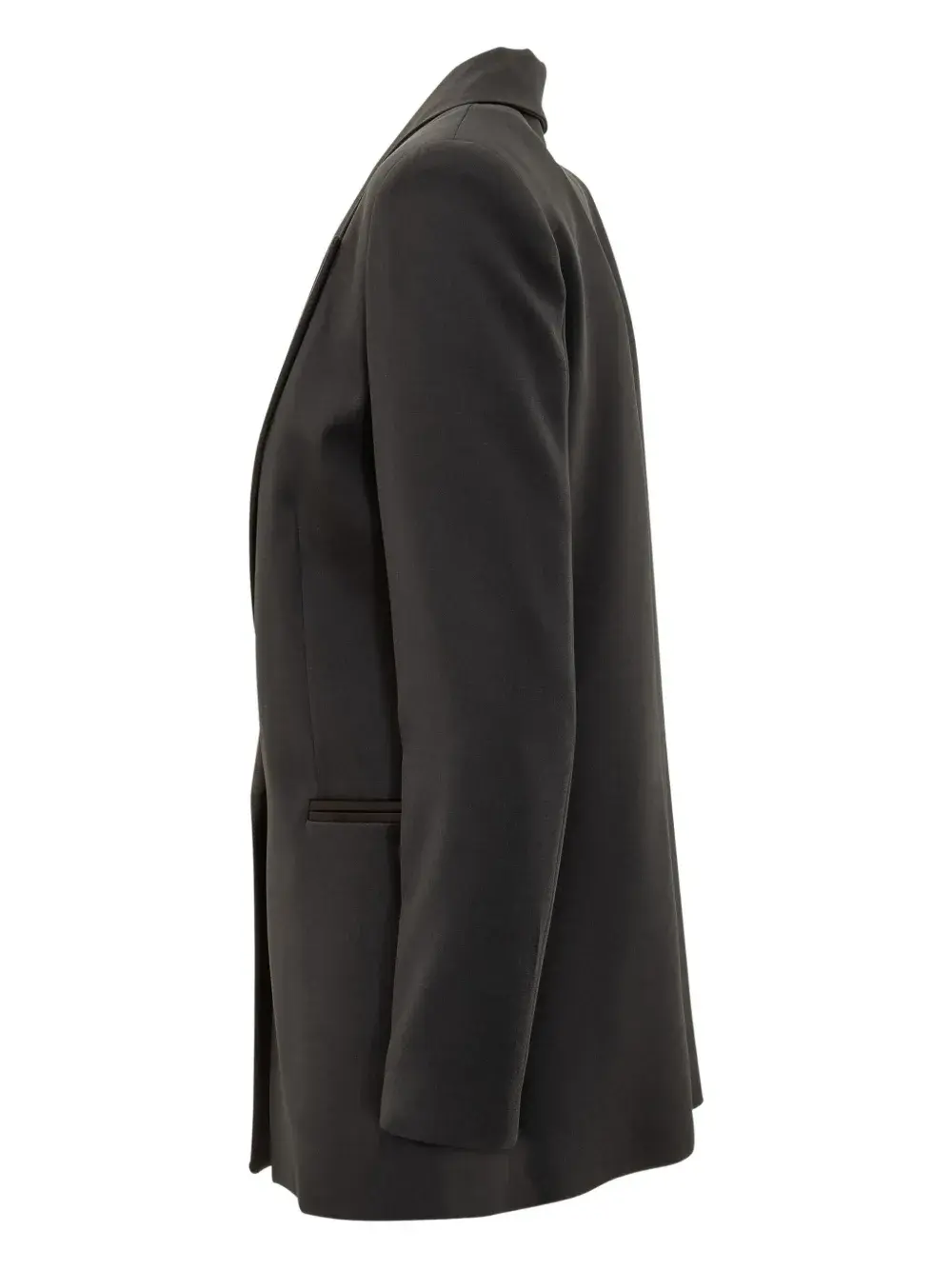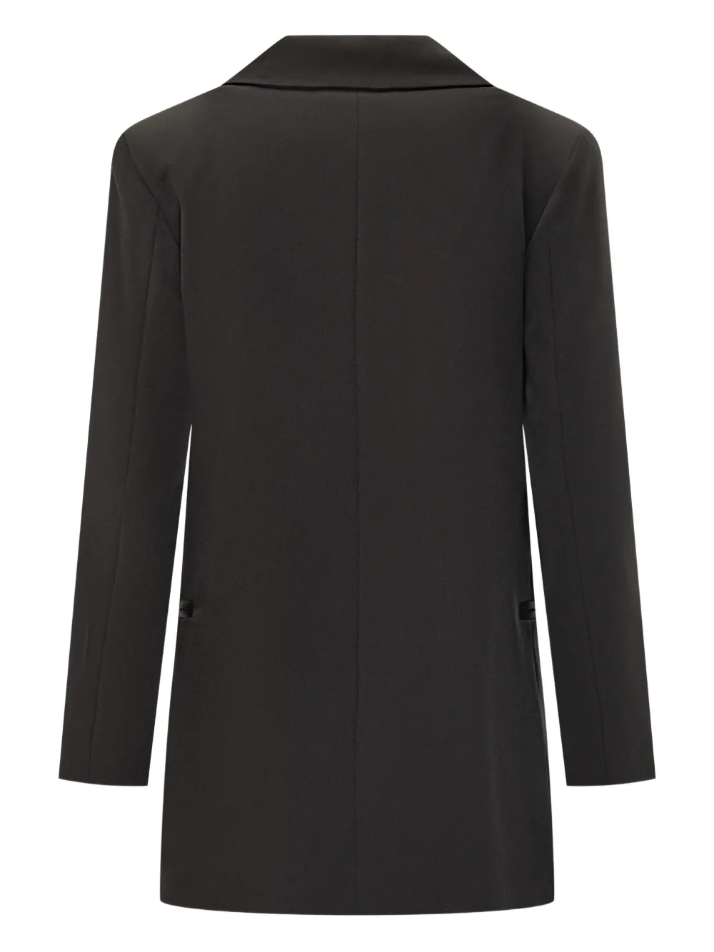 Черный атласный лацкан застежка на одну пуговицу длинные рукава прорезные карманы прямой подол