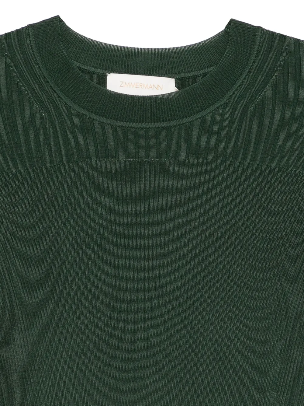 Свитер в рубчик с рукавами колокол ZIMMERMANN, зеленый