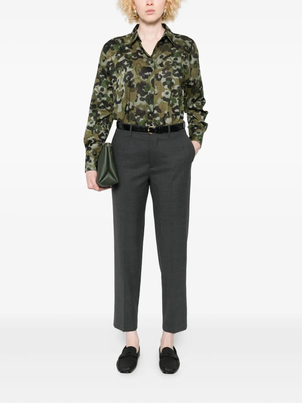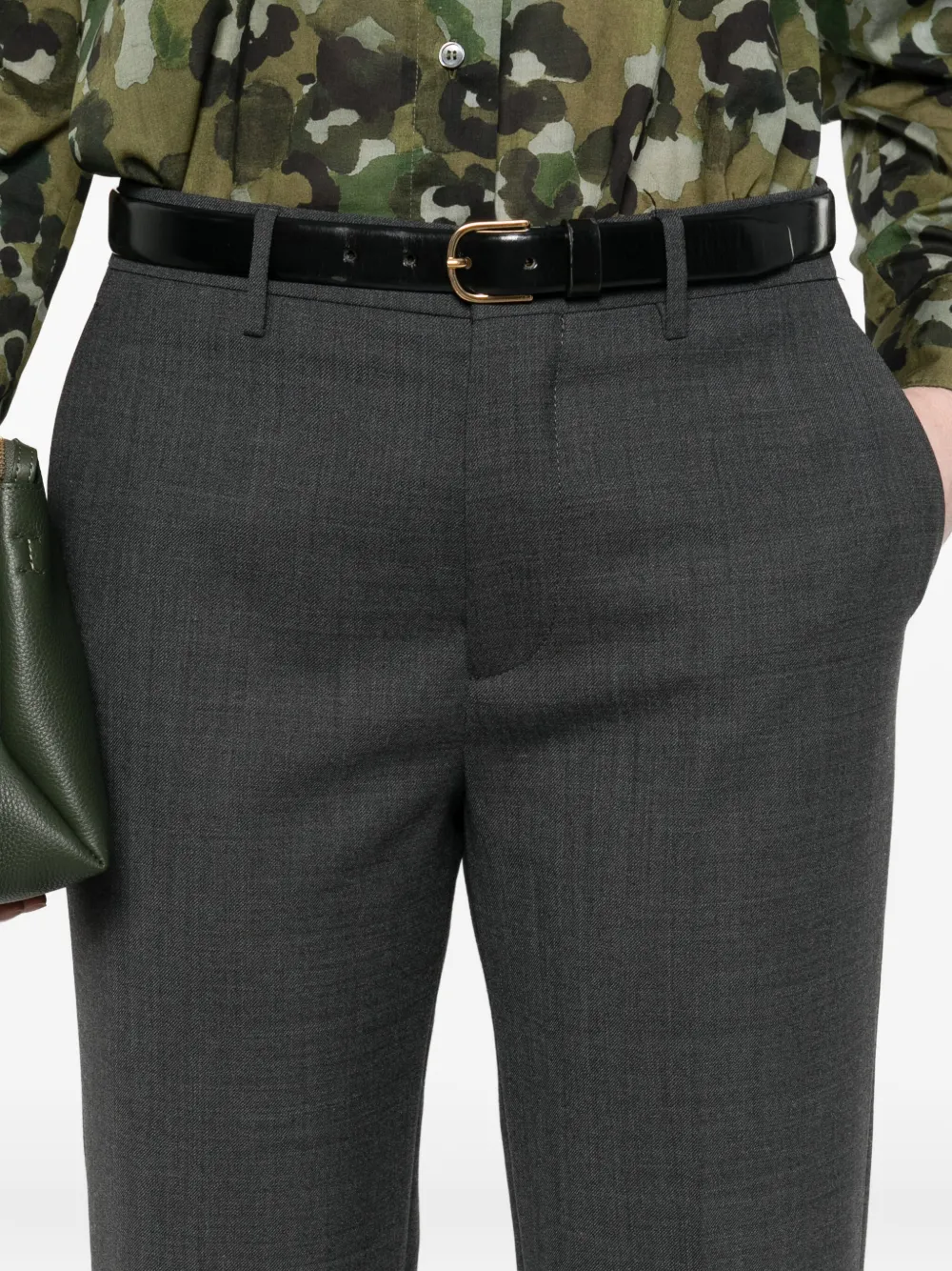 Серые прямые брюки с застежкой на пуговицах и заутюженными стрелками
