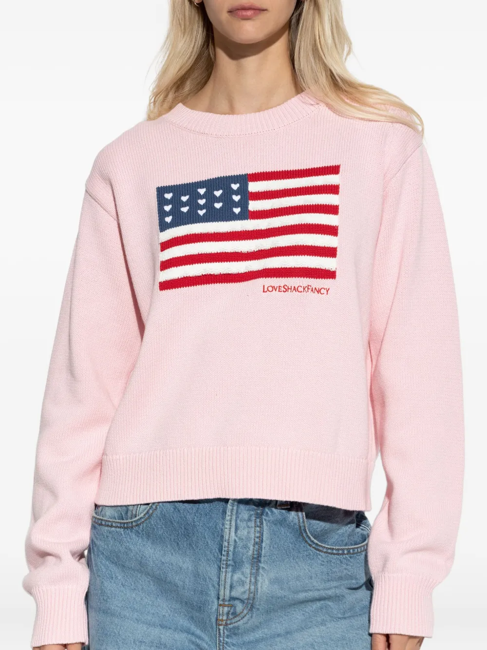 Розовый вязаный свитер с узором флага LoveShackFancy