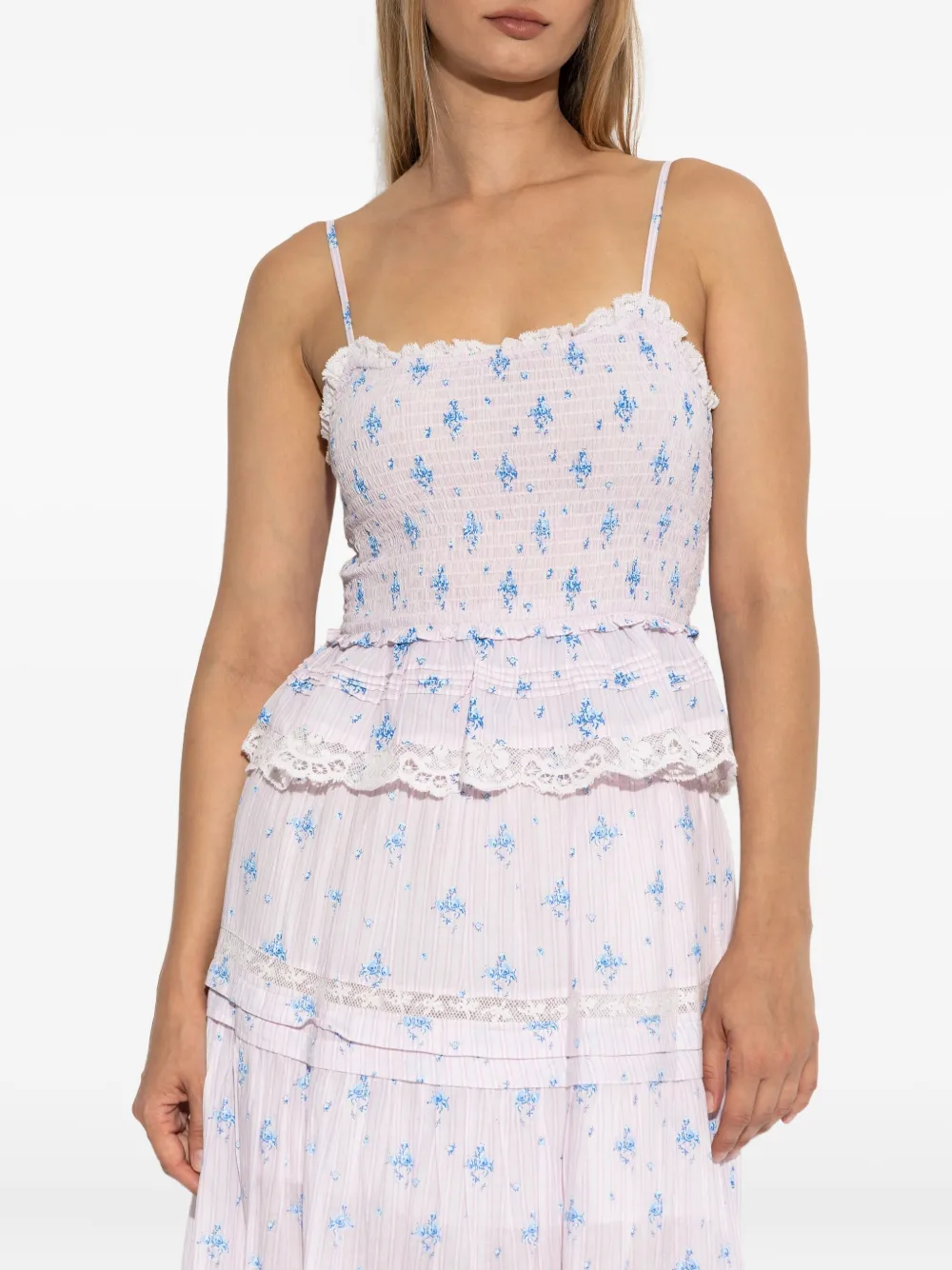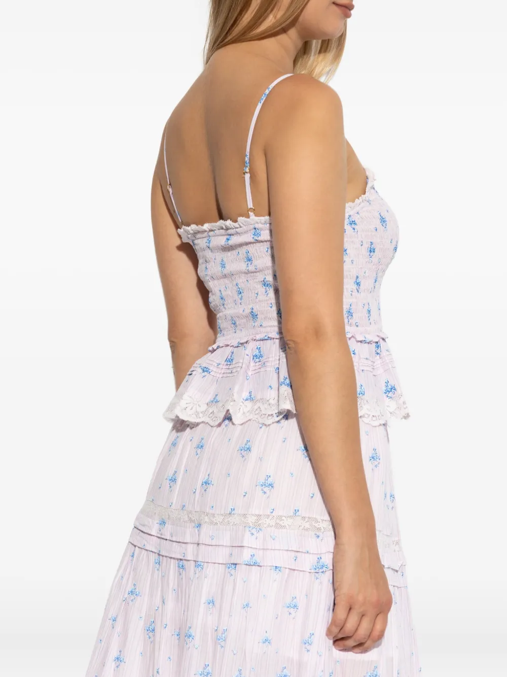Сиреневый цветочный принт смокированная (сборчатая) верхняя часть кружевная отделка многоярусная баска регулируемые бретели