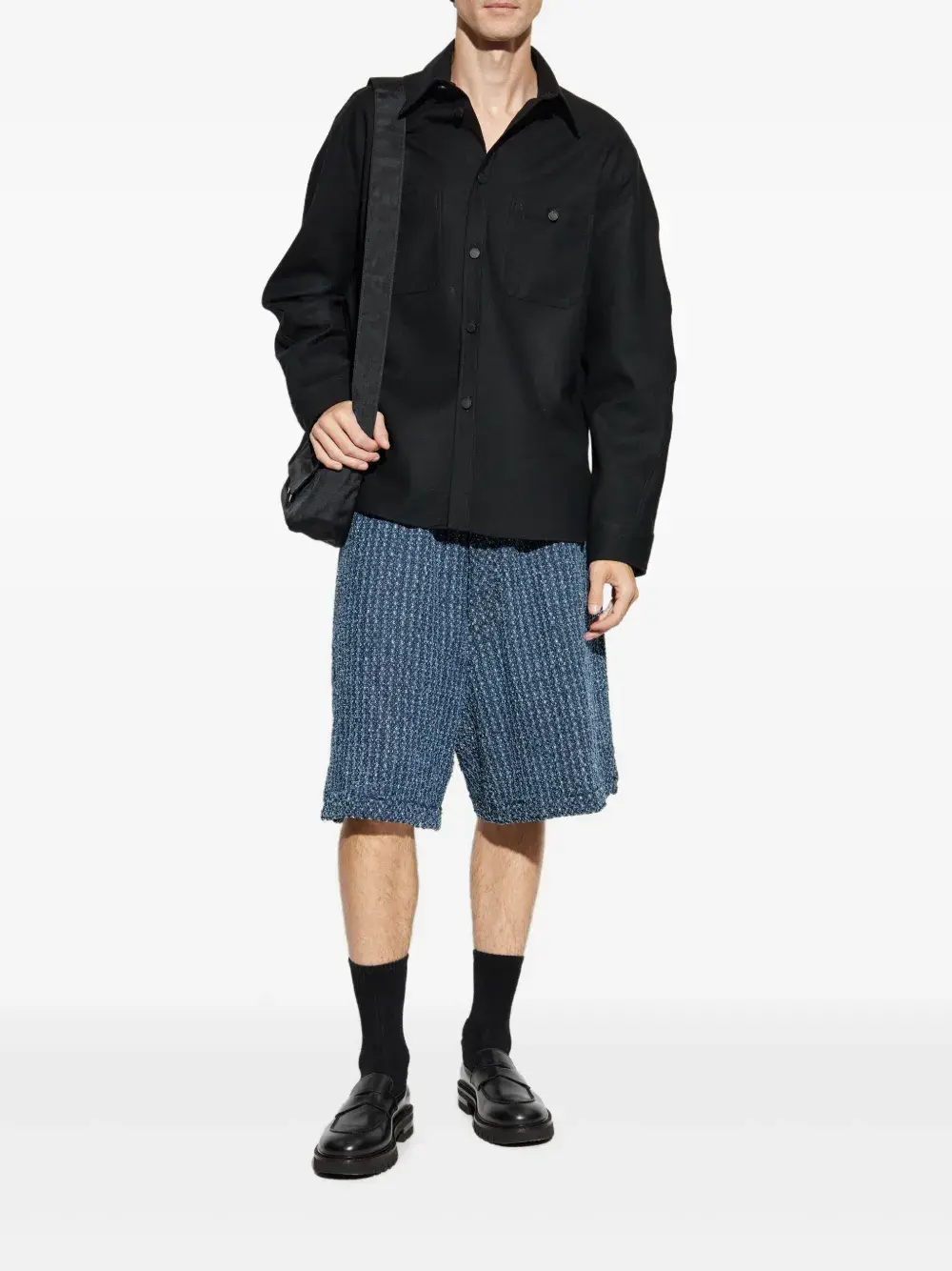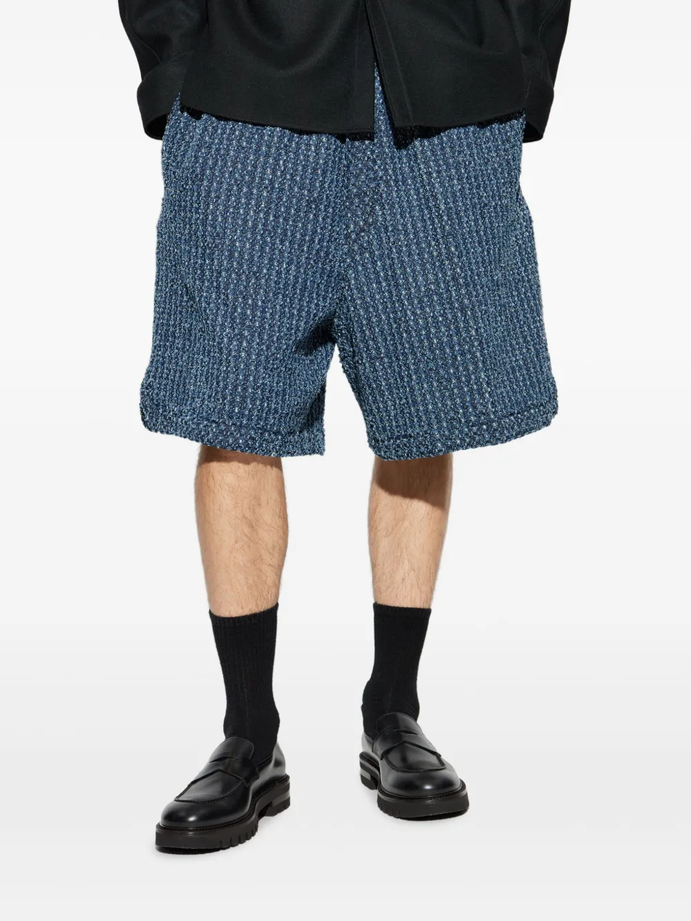 Синий ткань с текстурным плетением застежка на шнурке прямой низ гладкий перед