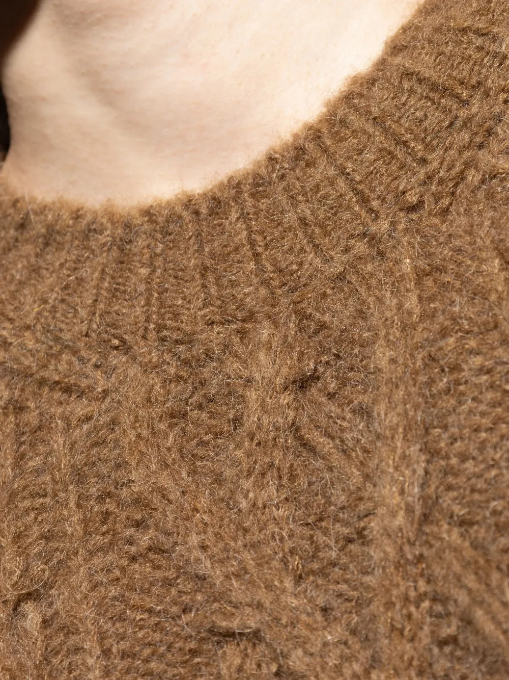 Коричневый вязаный косами круглый вырез длинные рукава ворсистая текстура