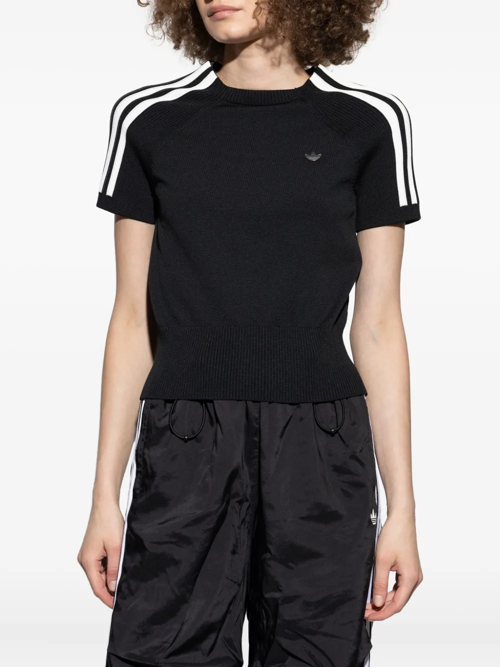 Рифленый топ с тремя полосками adidas, черный 7 287₽