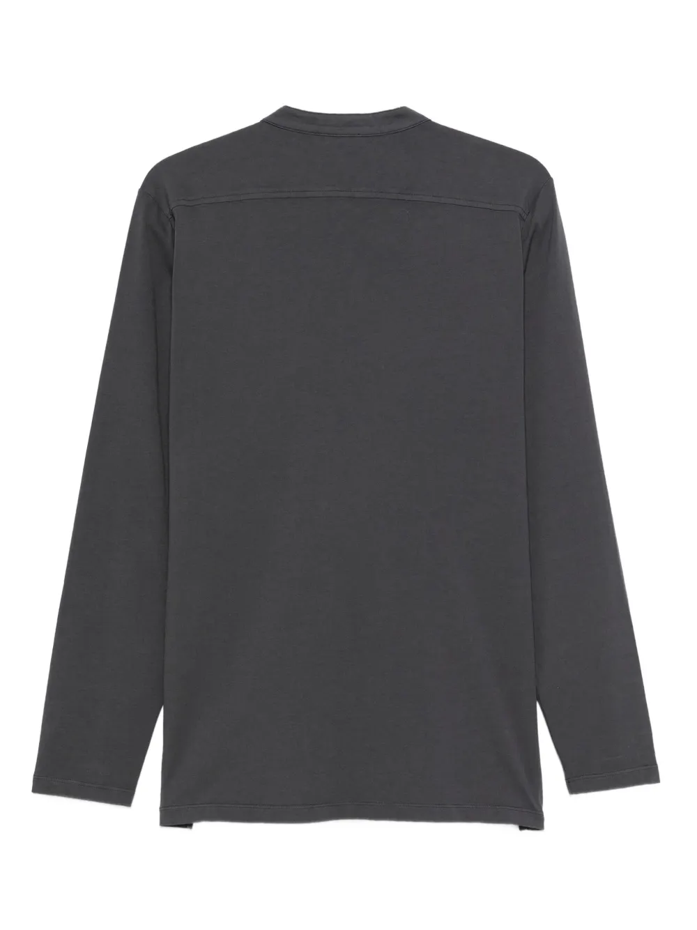 Серый лонгслив с воротником "хенли", длинными рукавами и прямым подолом