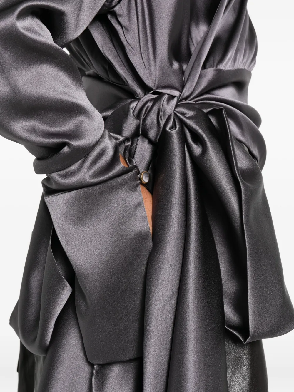 Дымчато-серый дизайн с запахом застежка на боковой завязке длинные рукава воротник-крылышко