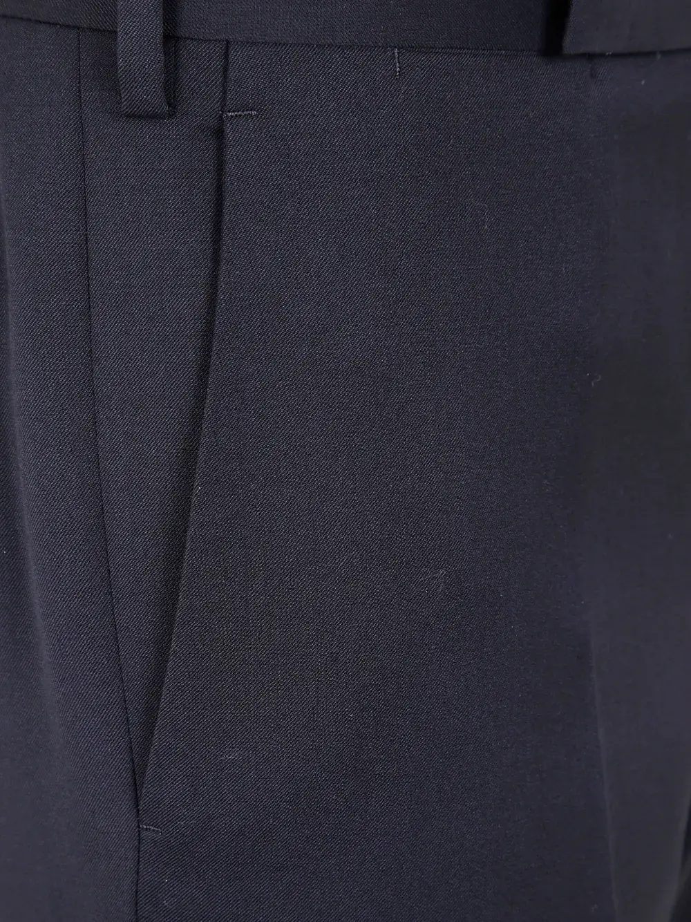 Черный шерсть прямой крой без защипов боковые карманы скрытая застежка спереди задние прорезные карманы шлевки для ремня