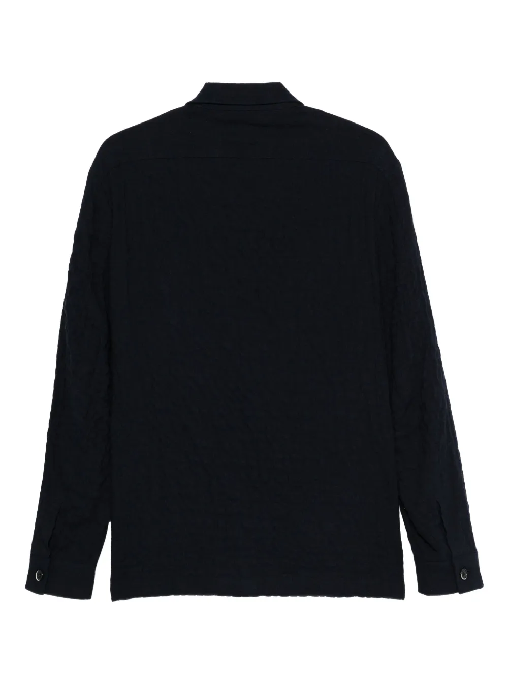 Темно-синий цвет, стеганая фактура, застежка на пуговицы, длинные рукава, воротник
