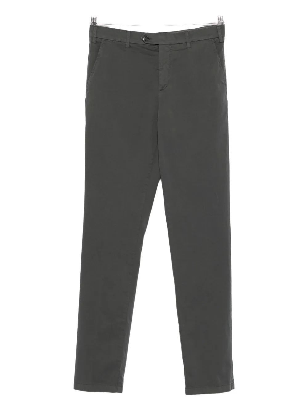 Серый хлопок застежка на пуговицы и молнию спереди боковые прорезные карманы шлевки для ремня прямые брючины