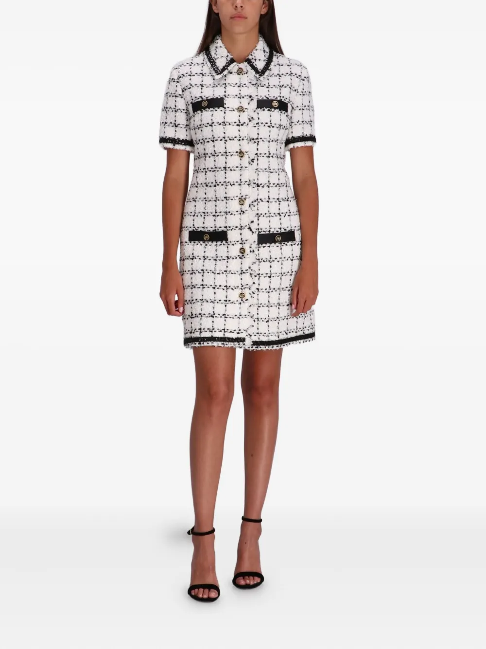 Клетчатое платье мини с короткими рукавами KARL LAGERFELD, белый 47 766₽