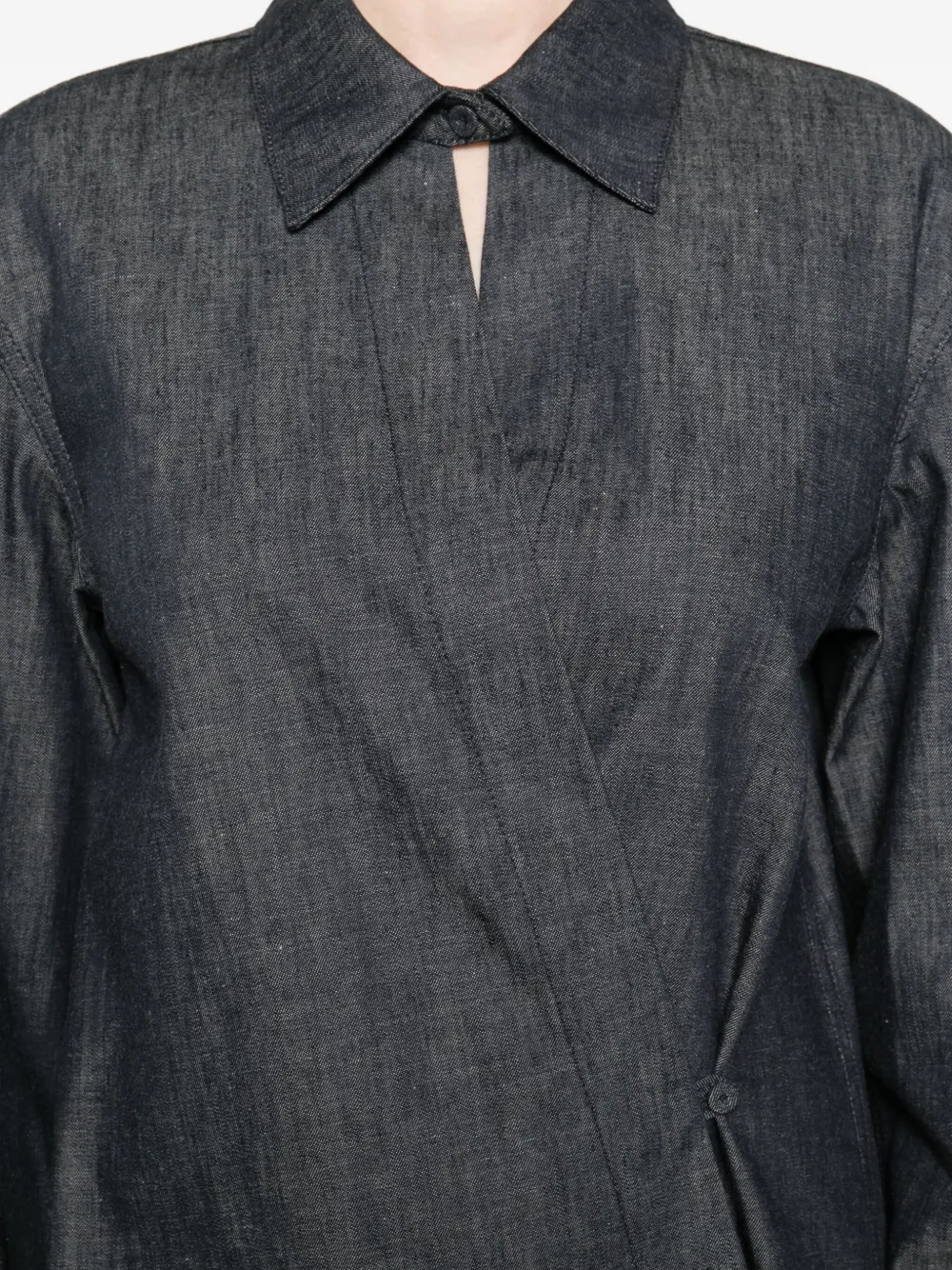 Джинсовая рубашка с эффектом запáха FENDI, синий 95 939₽
